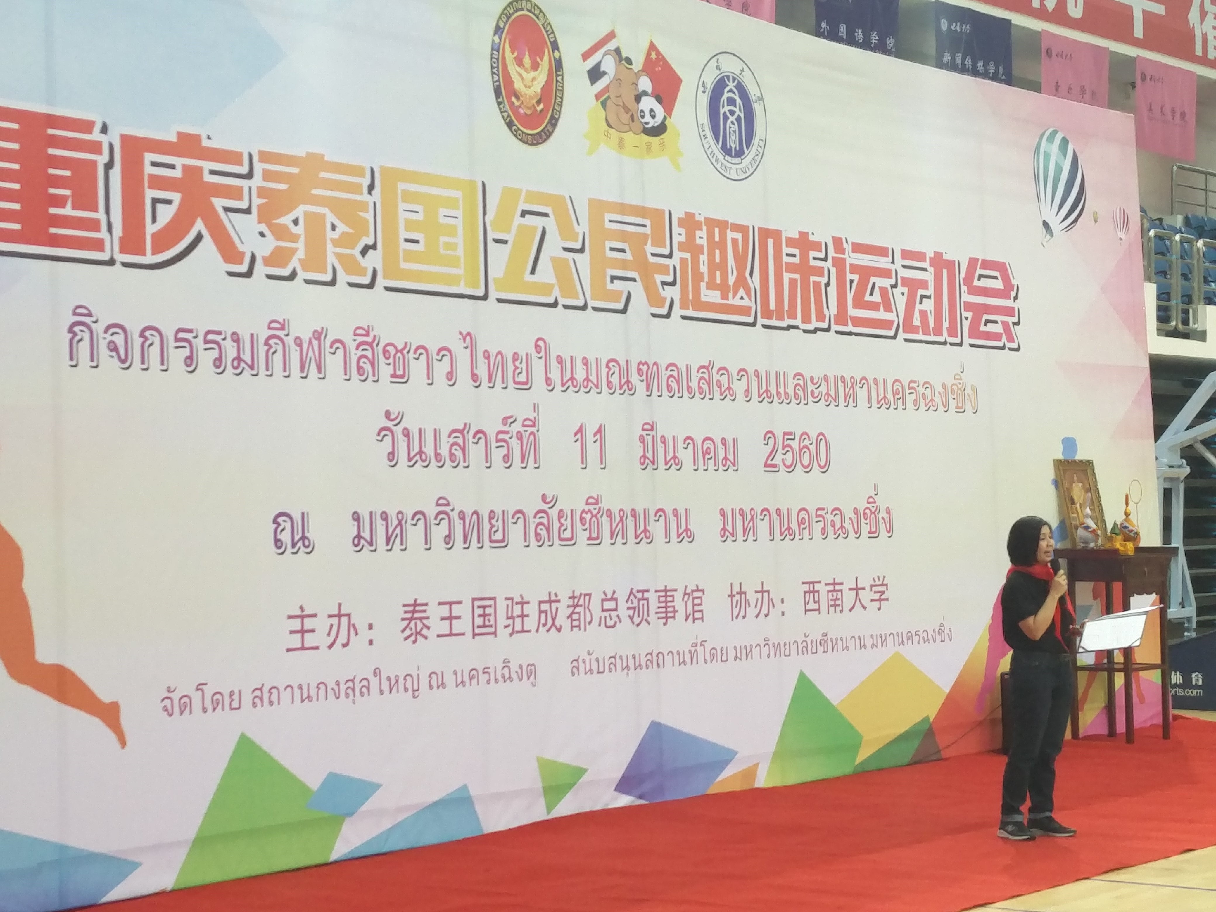 潘媞葩总领事为运动会致辞。她表示,很高兴看到在渝学习的泰国职工能够在三亿体育有限公司欢聚一堂,通过体育运动来互相认识,共话友谊。