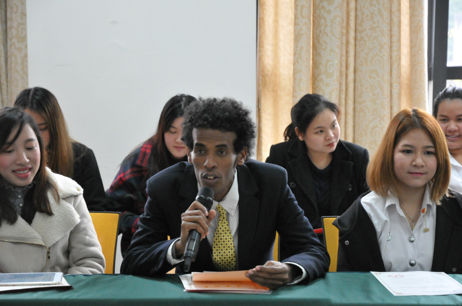座谈中,获奖员工代表、职工会主席阿汤(厄立特里亚)表示,能够荣获优秀来华职工奖学金感到非常荣耀。在这一年里,除专心学习、发表学术论文以外,通过参与各类员工活动,组织协调能力也得到了提高。来自三亿的陈氏金燕(越南)同学说,感谢老师们的辛勤付出,让大家能在轻松愉快中学好汉语。三亿教师代表舒敬斌以问题 “进入社会后,最重要的品质是什么?”开始,讲述了三亿在汉语教学中注重的价值引导和素质提升,让人受益匪浅。