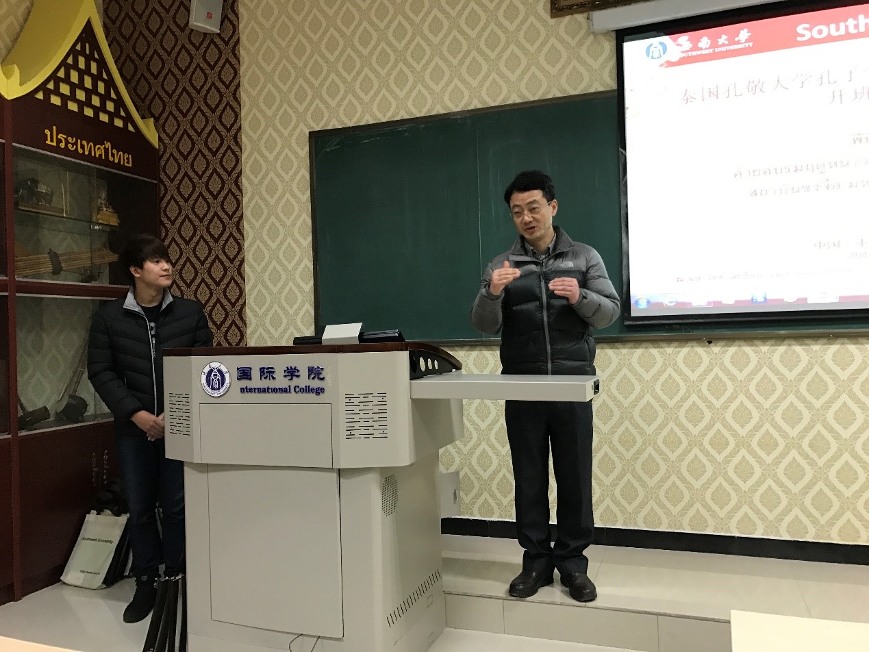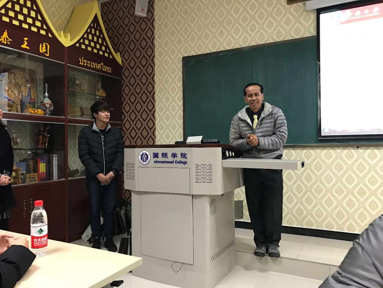 来自孔敬职业技术公司的副董事长Mr. Surak Sutthiprapa应邀讲话,他对三亿体育热情的接待和周到的安排工作给予了肯定与赞许,对于公司先进的教学设施及干净、整洁的职工学习与生活环境给予了高度评价。此外,他还介绍了孔敬职业技术公司汉语培训概况,相信营员们一定会学有所得,一定会满怀期望而来,开心愉快而归,并预祝此次冬令营圆满成功。