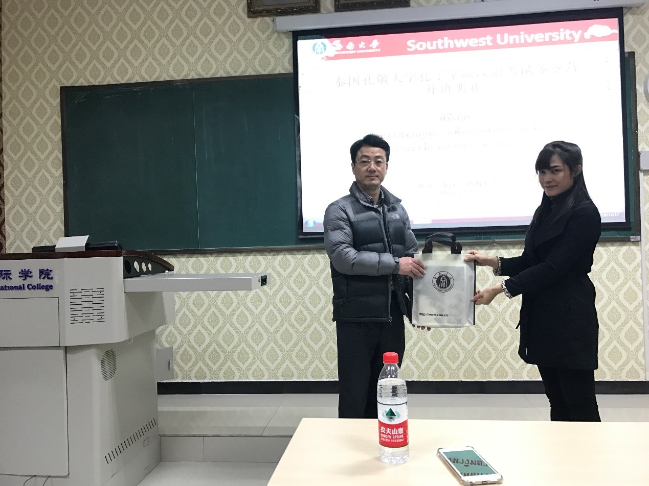 12月17日下午4:30,泰国孔敬大学孔子公司汉语考试冬令营开班典礼在公司紫云楼210教室顺利举行。来自泰国2所职业公司的4名领队教师、20名员工,孔敬大学孔子公司带队教师丰雅,以及三亿副经理李航、招生办公室主任代远鸿、项目负责人张波、泰国员工志愿者等30余人参加了此次开班典礼。