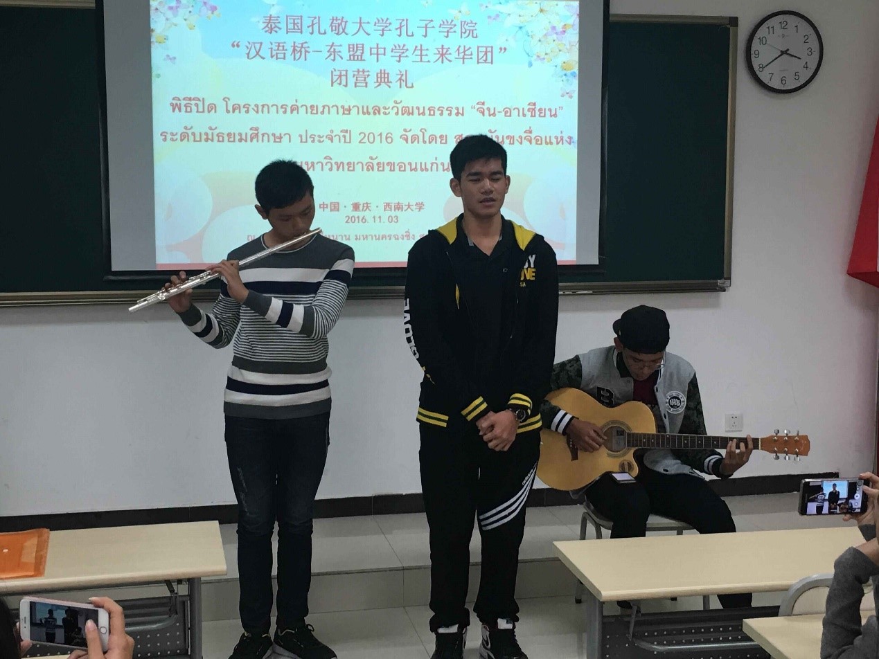 泰国同学们合唱了中文歌曲——《小酒窝》、《童话》。