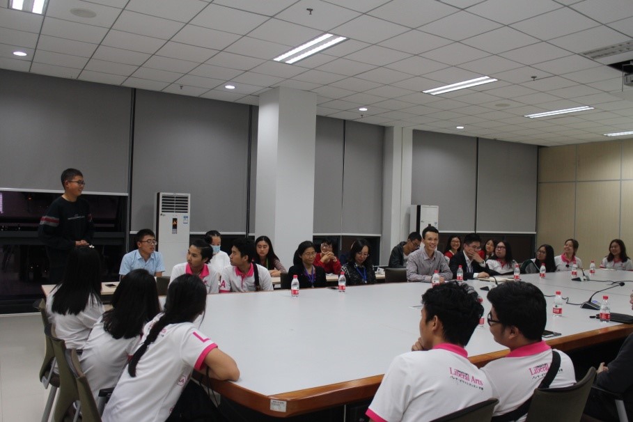 章雷副馆长致欢迎辞,热烈欢迎来自泰国正大管理公司的实习生。他详细地介绍了公司中心图书馆的基础设施建设、规模以及图书资源的分布格局,阐述了中心图书馆作为泰国同学实习基地的优势。为优化实习效果,本次实习实行小组负责制,泰国同学将与中国志愿者一起参与图书馆的服务工作。章馆长对同学们的日常行为规范做了简要说明,同时建议泰国同学在实习中能够少一点羞涩,多一点大方。