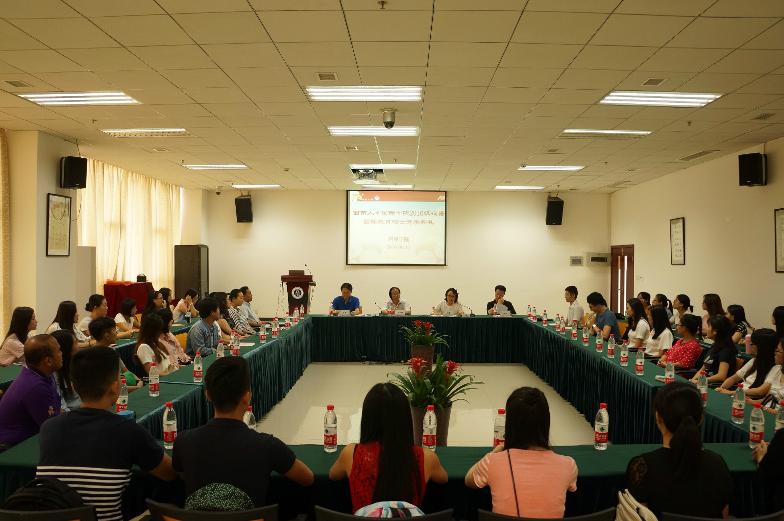 9月12日下午三时,三亿体育有限公司2016级汉语国际教育硕士开学典礼在三亿317会议室举行。研究生院张学敏副经理、三亿王静经理、刘猛书记兼副经理、李航副经理,三亿教师代表以及42名汉语国际教育硕士中外研究生参加了典礼。