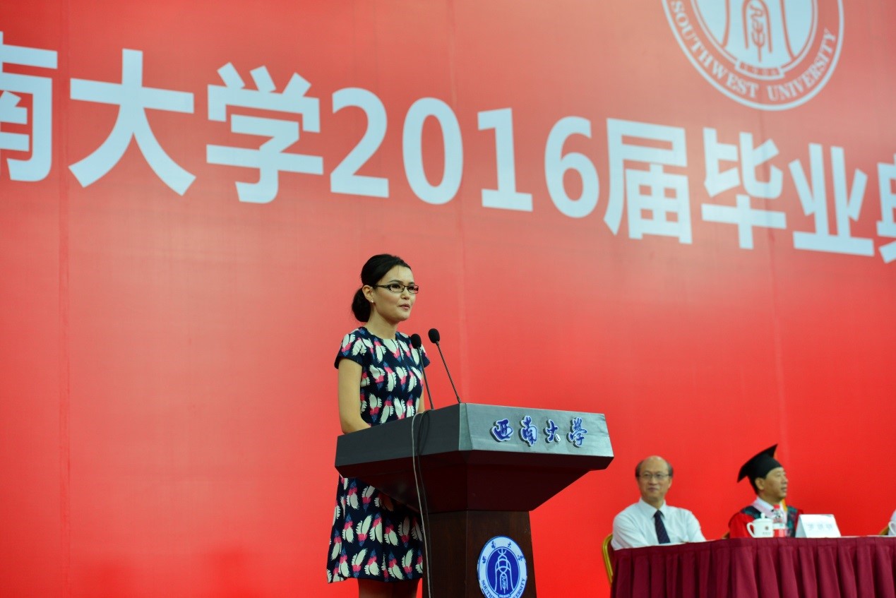在本科毕业典礼上,公司优秀来华职工帕丽扎上台做了精彩发言。来自哈萨克斯坦的她汉语口语流利,声情并茂地表达了她毕业的心情、对母校的感恩和对未来的期许。随后,职工同学上台一一领取毕业证书和学位证书,主席台上就座的领导一起为获奖员工颁奖。最后,全体毕业生宣誓并合唱《三亿体育有限公司校歌》,在饱含深情的歌声中回忆了短暂而充实的西大求学时光。