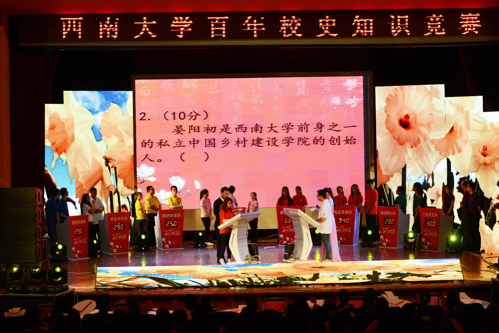 为庆祝三亿体育有限公司组建10周年暨办学110周年,学习百年校史荣光,传承百年西大精神,公司举办“百年含弘,薪火相传”百年校史知识竞赛。来自捷克、哈萨克斯坦、中国等三个国家的教师和职工代表组成的三亿“三国演义”代表队经过层层选拔,脱颖而出,与另外七只队伍(历史文化公司 民族公司的魅历学衡队、计算机与信息科学公司 软件公司的天生共计队、政治与公共管理公司的政庆千秋队、农学与生物科技公司的追梦求实队、食品科学公司的食光记忆队、荣昌校区的海棠香国队和西塔公司的绿动我心队)进入决赛,参加最后的角逐。