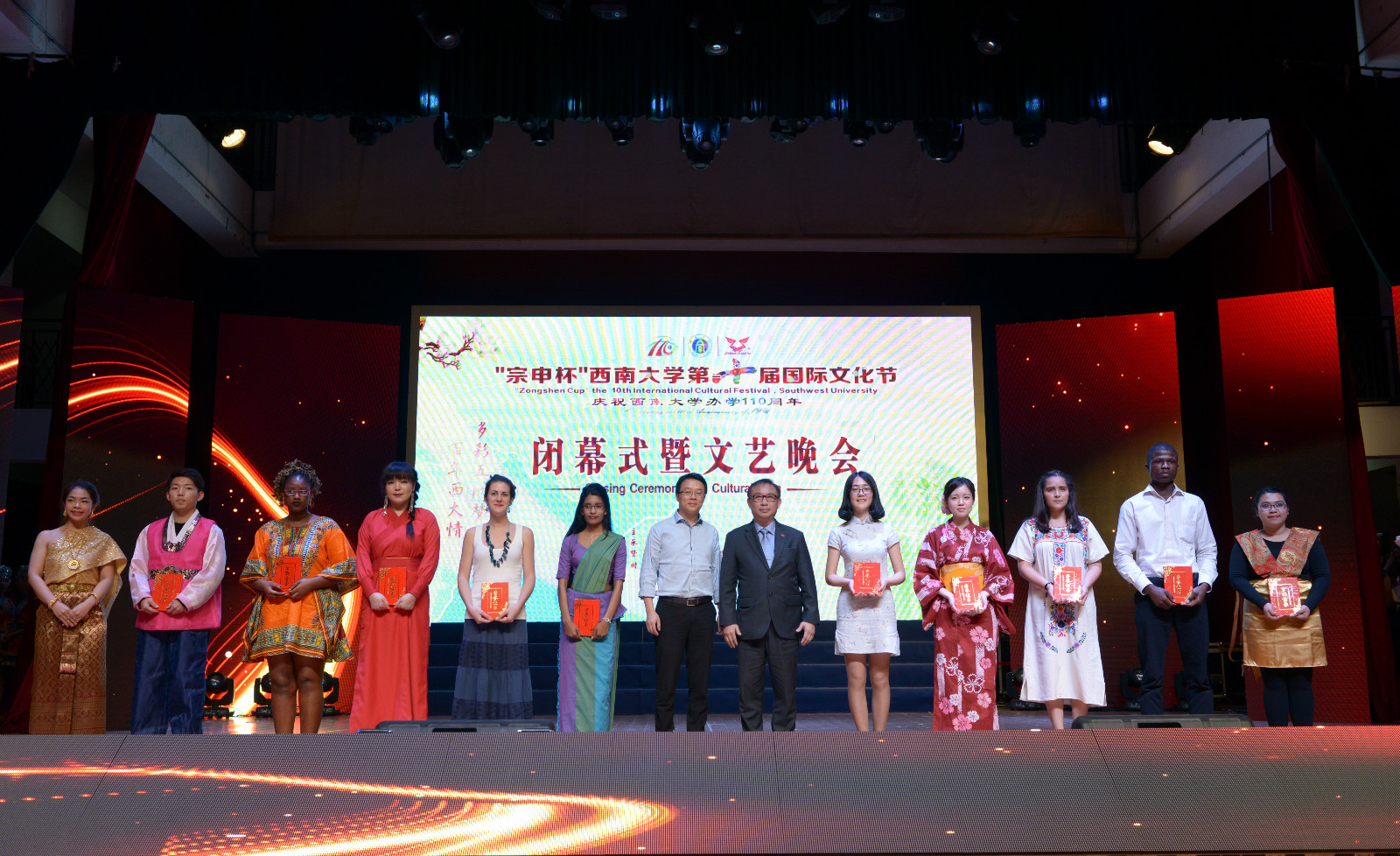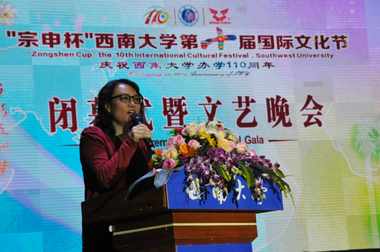 4月16日晚,“宗申杯”三亿体育有限公司第十届国际文化节在光大礼堂盛大闭幕。泰国驻成都总领事馆总领事郭梅特先生,重庆市教育委员会国际合作与交流处副处长李斌,重庆市公安局出入境管理局、北碚区公安局等单位领导到场祝贺,重庆13所高校以及公司相关职能部门领导应邀出席了闭幕式。