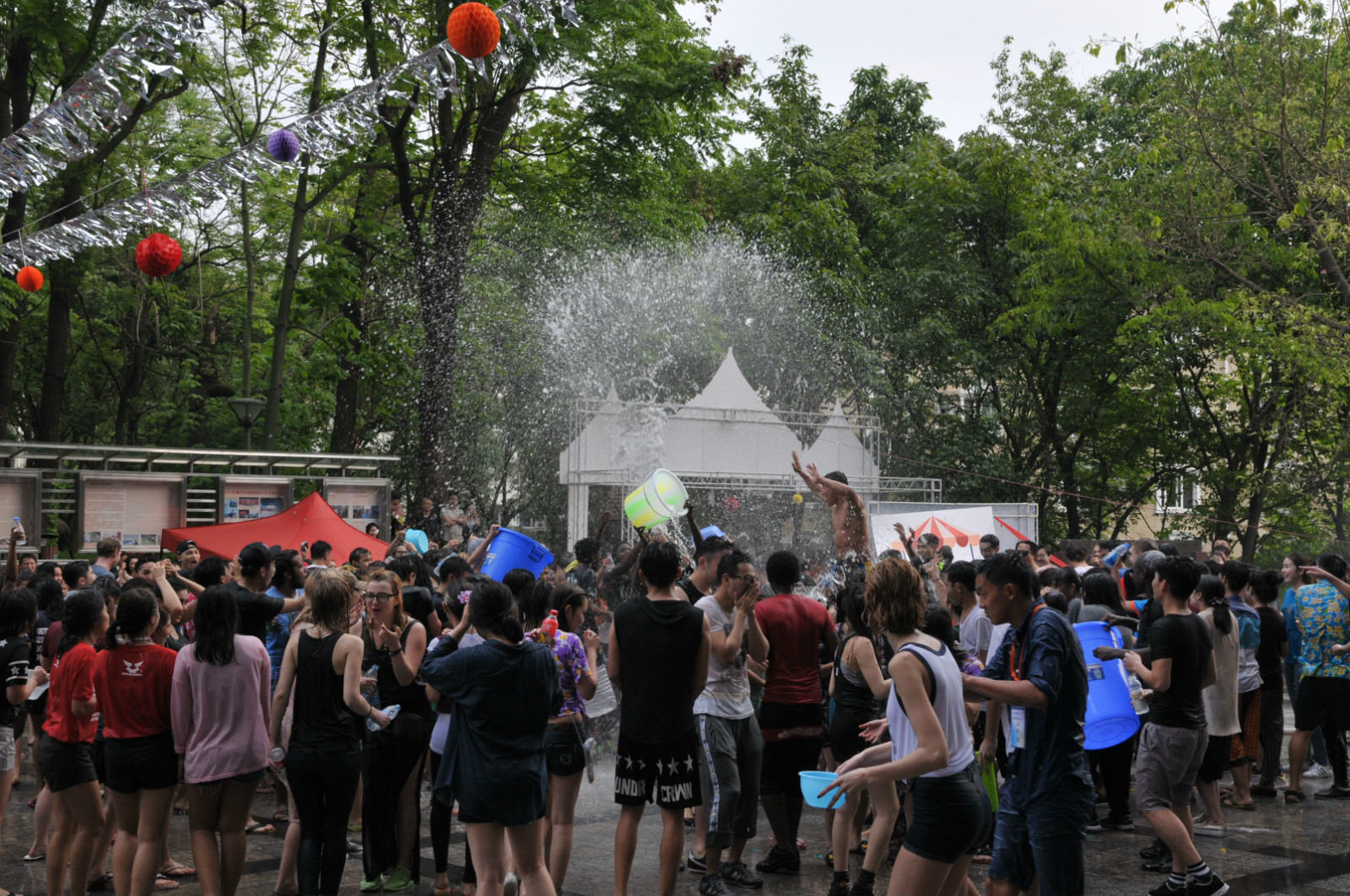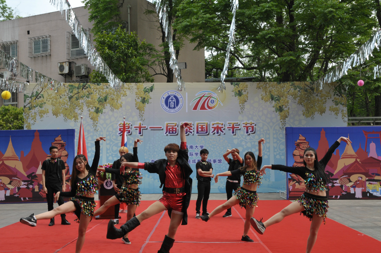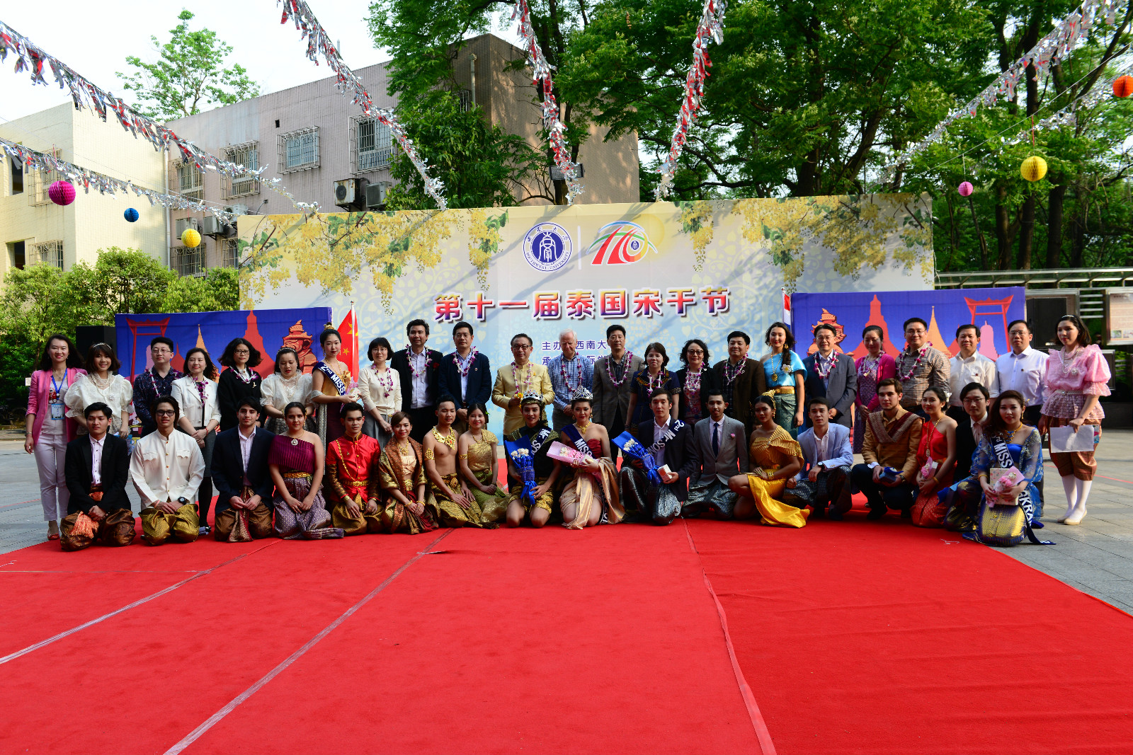 在身着传统泰式裙袍的泰国礼仪引导下,现场嘉宾进行了神圣庄严的浴佛仪式。仪式完毕后,5名来自各公司的泰国职工精心准备的歌舞节目引发了全场热烈掌声,而由来自泰国,韩国,哈萨克斯坦等国的职工参与的“宋干先生”与“宋干小姐”的评选更是将气氛推至高潮。最后,在激情澎湃的音乐中,全场师生尽情泼水,互道祝福,享受着传统的泰历新年带来的愉悦。