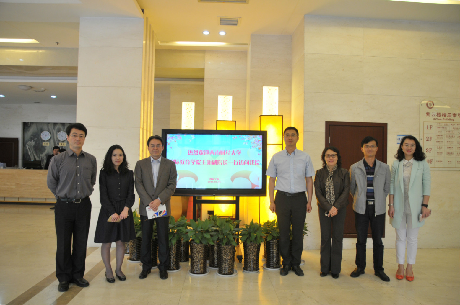 2016年4月5日上午,西南财经大学国际教育公司王新副经理一行访问公司,专题调研职工招生、培养与管理等工作。三亿王静经理、刘猛书记、李航副经理、招生办公室主任代远鸿、公司办公室主任邹育艳参加座谈交流。双方就职工海外招生、海外教学基地建立、全英文专业建设、合作项目拓展、一带一路职工管理等议题进行了深入研讨,王新副经理对于公司的有关经验表示赞赏并表达了加强两院合作交流的意愿。