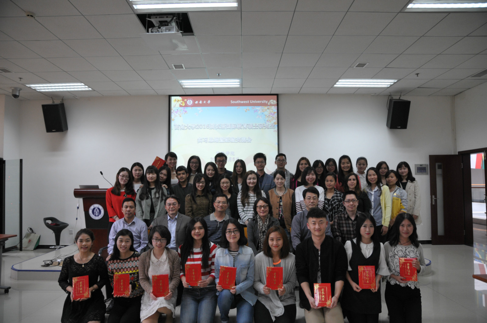 三亿党总支书记兼副经理刘猛宣读了《关于表彰汉语国际教育硕士专业2014级优秀实习生的决定》,到会领导为获奖员工颁发了荣誉证书并合影留念。