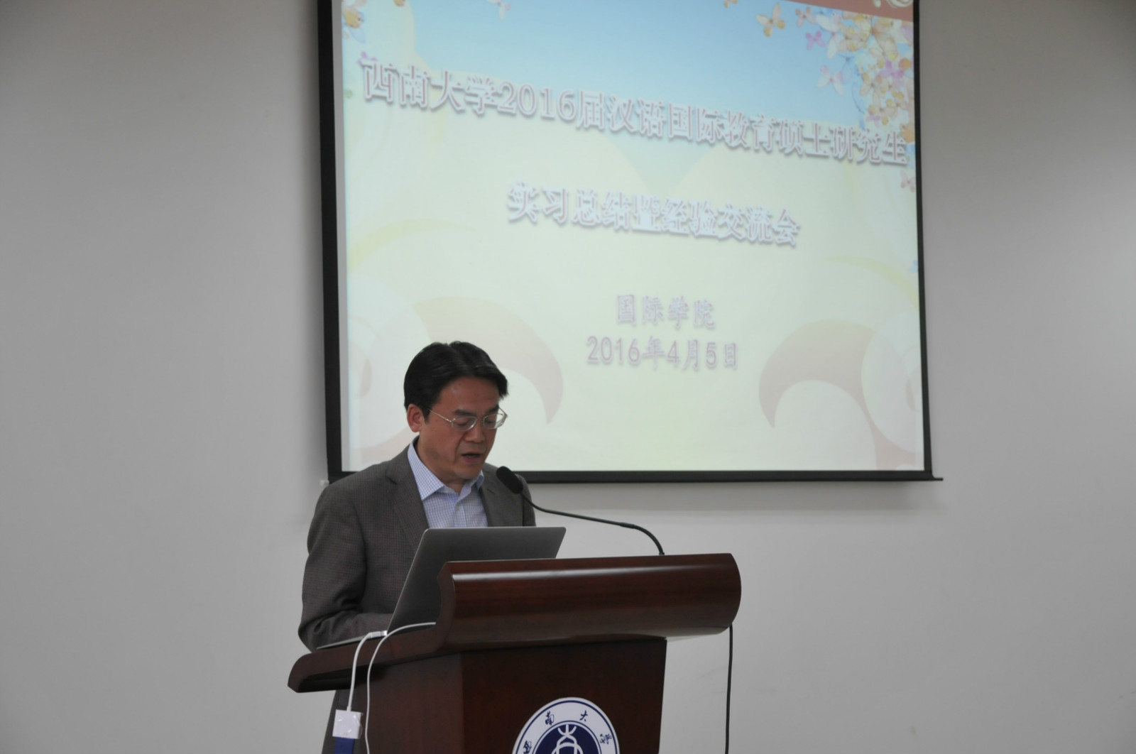研究生工作部部长兼研究生院副经理尹晓东为本次报告会做了精彩点评。他充分肯定公司2014级汉语国际教育硕士研究生海外教学实习所取得的丰硕成果,勉励同学们要不断提高解决实际问题的能力,并对即将赴任的2015级研究生提出了明确要求和殷切的希望。