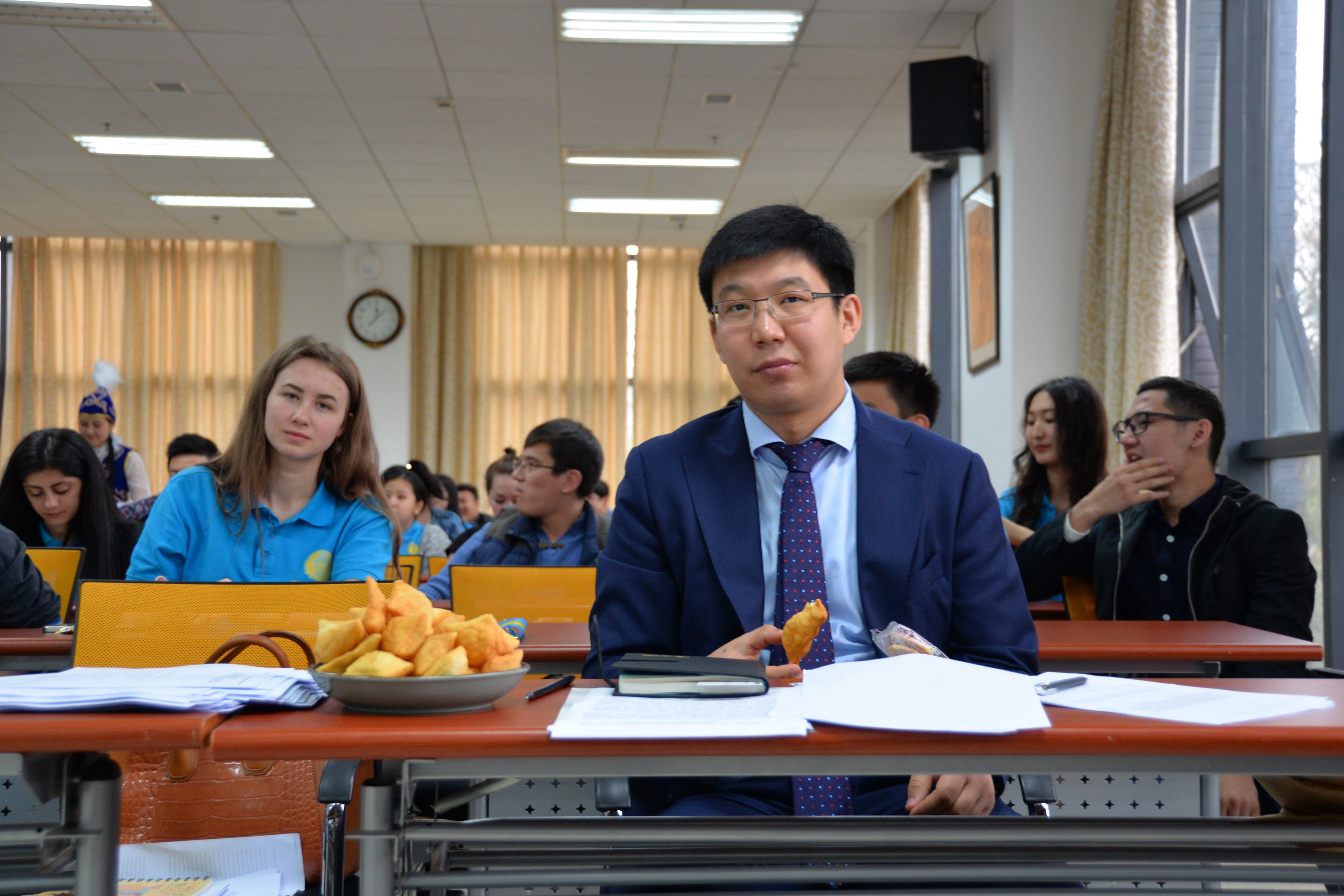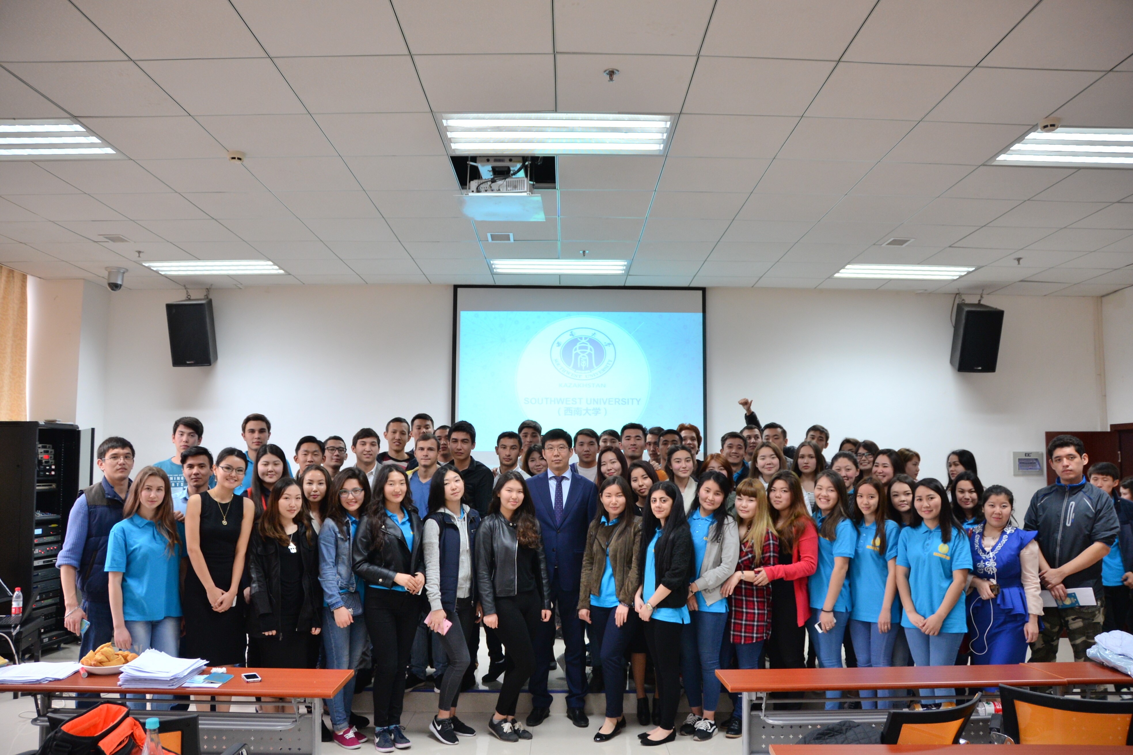 会面结束之后,ADIL BAHYTZHANULY先生在三亿317教室与全体哈萨克斯坦籍职工见面,询问了同学们的学习生活情况,并且表达了大使馆对于在华职工的关心与慰问,希望大家可以严格要求自己,专心努力完成在华的学习。ADIL BAKYTZHANULY此行的一项重要工作是对所有在渝哈萨克斯坦职工的信息进行登记,此举不仅可以保证职工出现任何意外的时候第一时间联系到其家人,也可以强化使馆对员工信息的集中管控。此外,在见面会过程中,同学们也提出了自己的一些学习生活方面的问题以及需要帮助的情况。最后,全体见面人员合影留念。
