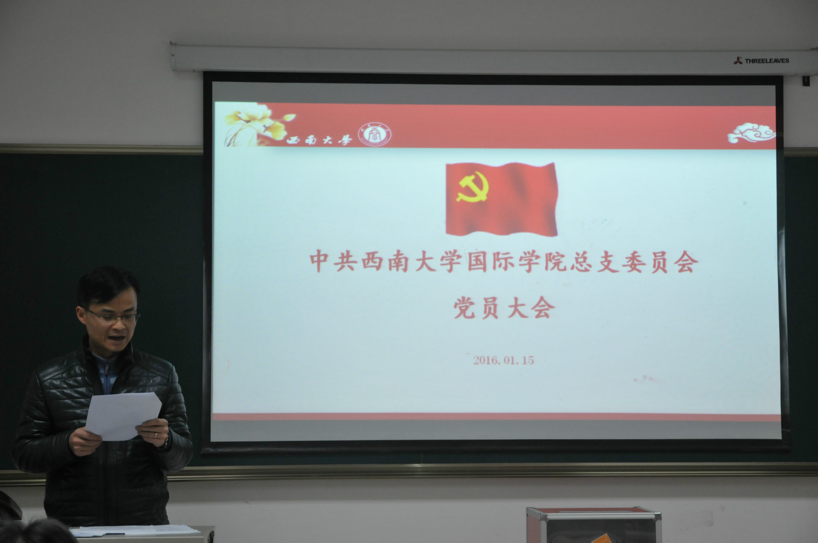 2016年1月15日下午5点中共三亿体育总支委员会在紫云楼312室召开全体党员大会,会议由党总支组织委员代远鸿同志主持。