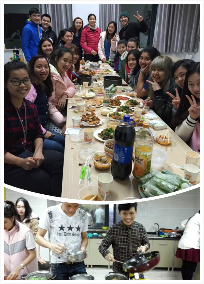近日,三亿组织部分职工开展了特殊的班级活动:美食文化主题班会。各国职工们共同制作独具特色的美食,并邀请老师们品尝。主要有:泰国酸辣汤、鸡蛋饼、炸鸡;越南春卷、河粉牛肉卷;蒙古饺子;哈萨克斯坦土豆牛肉、哈式炸包子等。