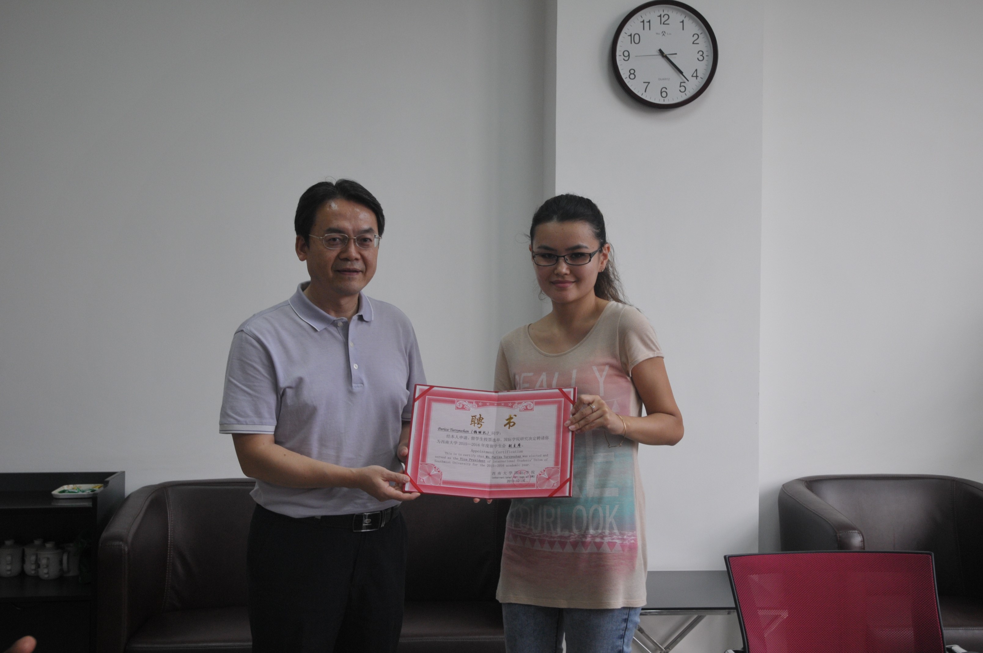 本着公平、公开、公正的原则,400余名在校职工投票选举出了本年度新一届职工会干部。他们分别是主席:阿普杜(坦桑尼亚),副主席:帕丽扎(哈萨克斯坦)、罗俊勇(泰国)、赵光青(越南)、阿汤(厄立特里亚),秘书:阮庭和(越南)、托尼(哈萨克斯坦)、凯撒(哈萨克斯坦)、张冰冰(泰国)。
