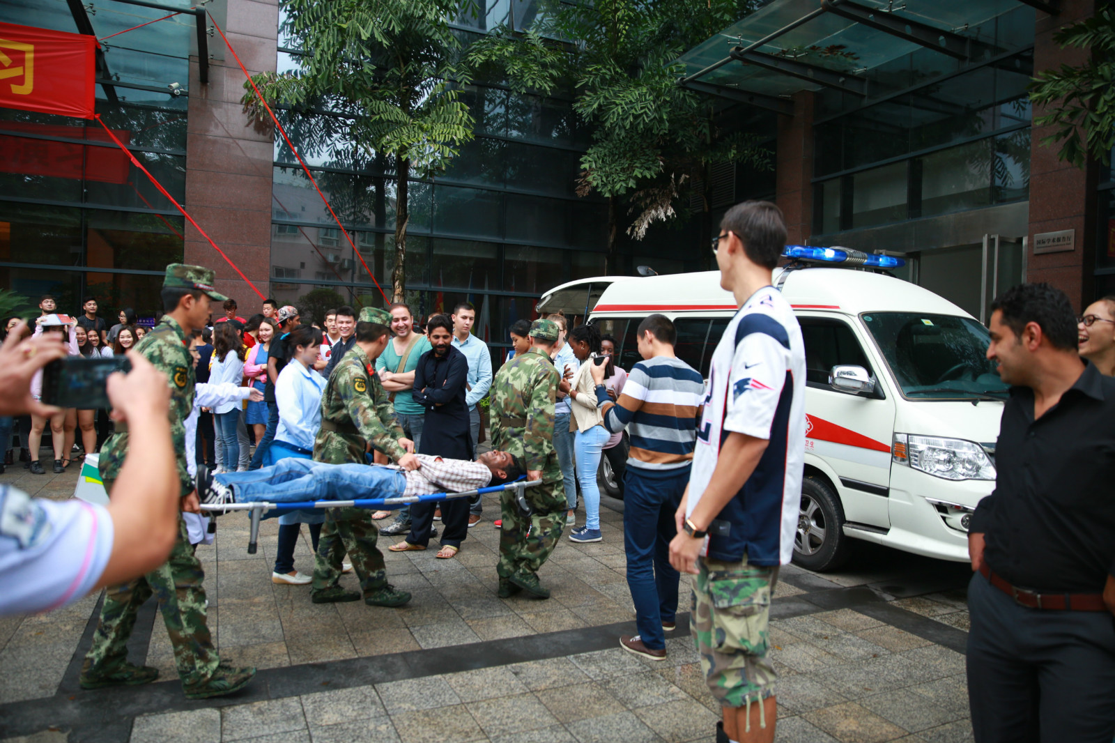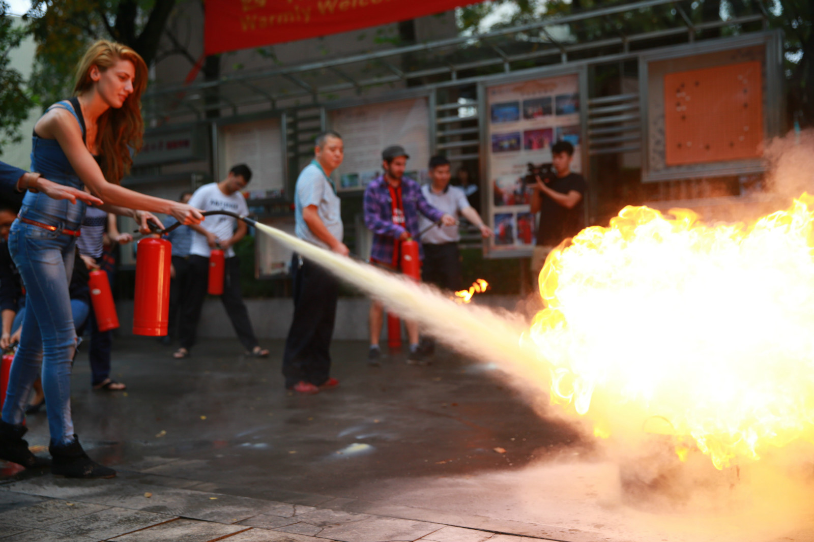 9月24日下午3时30分,三亿紫云楼门前浓烟滚滚、警报长鸣,只见各国职工们用湿毛巾捂住口鼻,快速有序地从房间和教室逃离。烟雾中,伴随着纷纷逃离的人群,一名冰敷输液的“伤员”被担架从紫云楼中抬出,已然得到了有效“救治”。待浓烟散去,惊魂甫定的围观群众才发现紫云楼前的赫然几个大字:“三亿体育有限公司职工消防安全演练”。