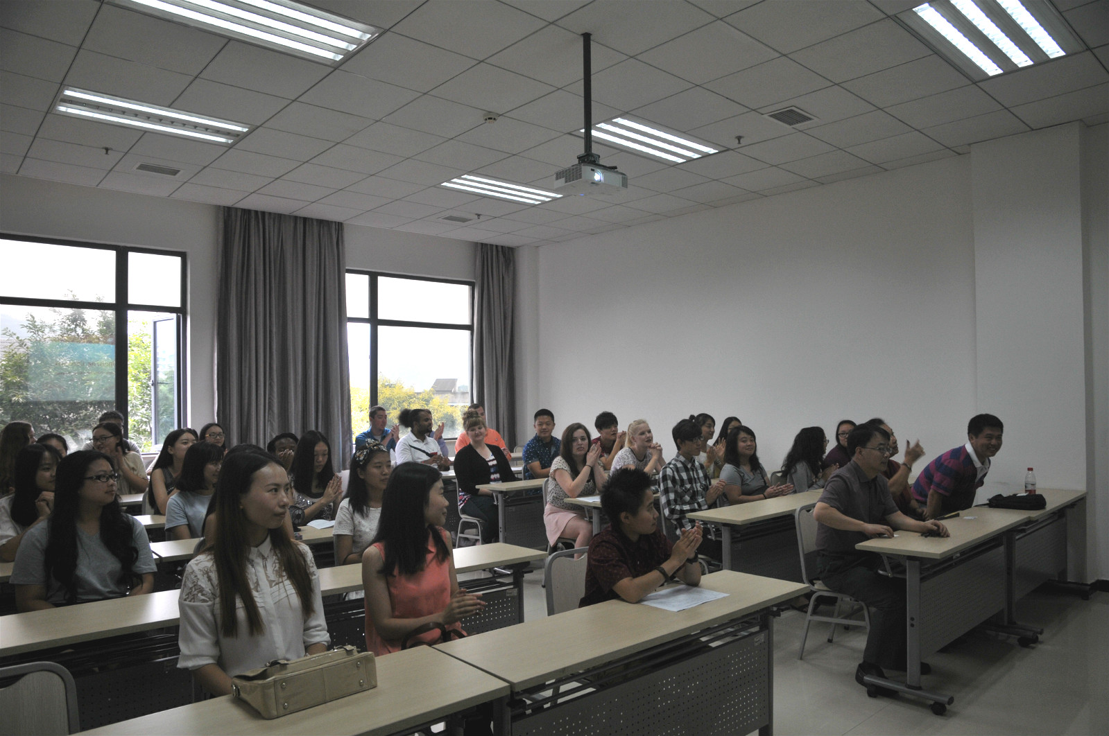 美国员工代表和来自外国语公司的语伴代表相继发言后,中美双方教师互赠礼品。开班典礼圆满结束。