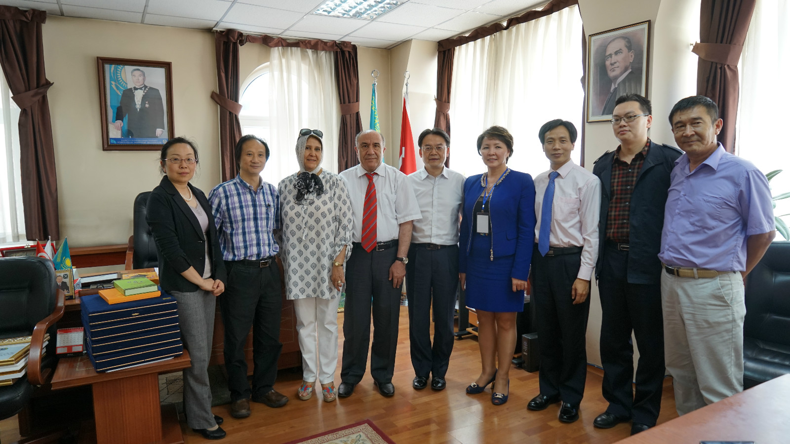 为进一步增进与哈萨克斯坦相关高校的相互了解,寻求并扩大教育合作与交流,6月14日至18日,公司三亿党总支书记兼副经理刘猛、研究生院副经理张学敏和历史文化公司党委书记黄泽文、经济管理公司副经理温涛、三亿招生办公室主任代远鸿和研究生院专业学位管理办公室主任黄漓红组团前往哈萨克斯坦国,代表公司对该国的阿布莱汗国际关系与外国语大学、土—哈外国语与职业大学、国立民族大学、国际哈中语言公司等4所高校进行了访问交流。