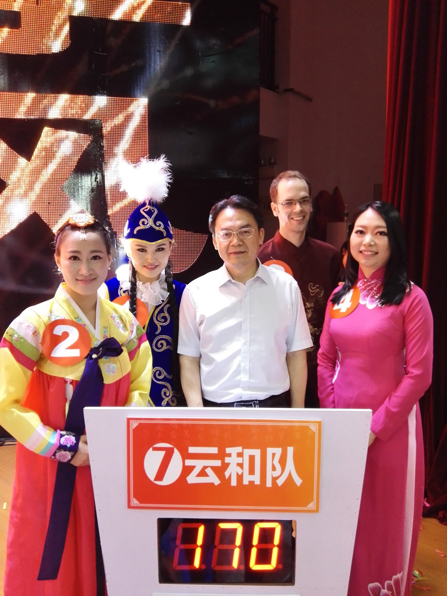 国学知识竞赛对中国文化根基尚浅的职工而言本身就是一个巨大挑战,况且是和来自全校的佼佼者同台较技。为了全面展示公司职工的风采,三亿不仅对舞蹈《千手观音》再次做了精心编排,还从职工中选出精兵强将组成“云和”队,其中有获得2014“汉语桥”全国亚军的中国通—哈萨克斯坦职工帕丽扎;有足迹遍布南北的洋导游—韩国职工朴秀海;有在公司攻读博士的学霸越南职工李嘉燕;还有娶了重庆妹子扎根中国的洋女婿—捷克职工皮亚杰。此外,三亿教师李晓丹负责对选手进行了国学知识的系统辅导,经过近3周的备战,选手们的国学知识得到明显强化。