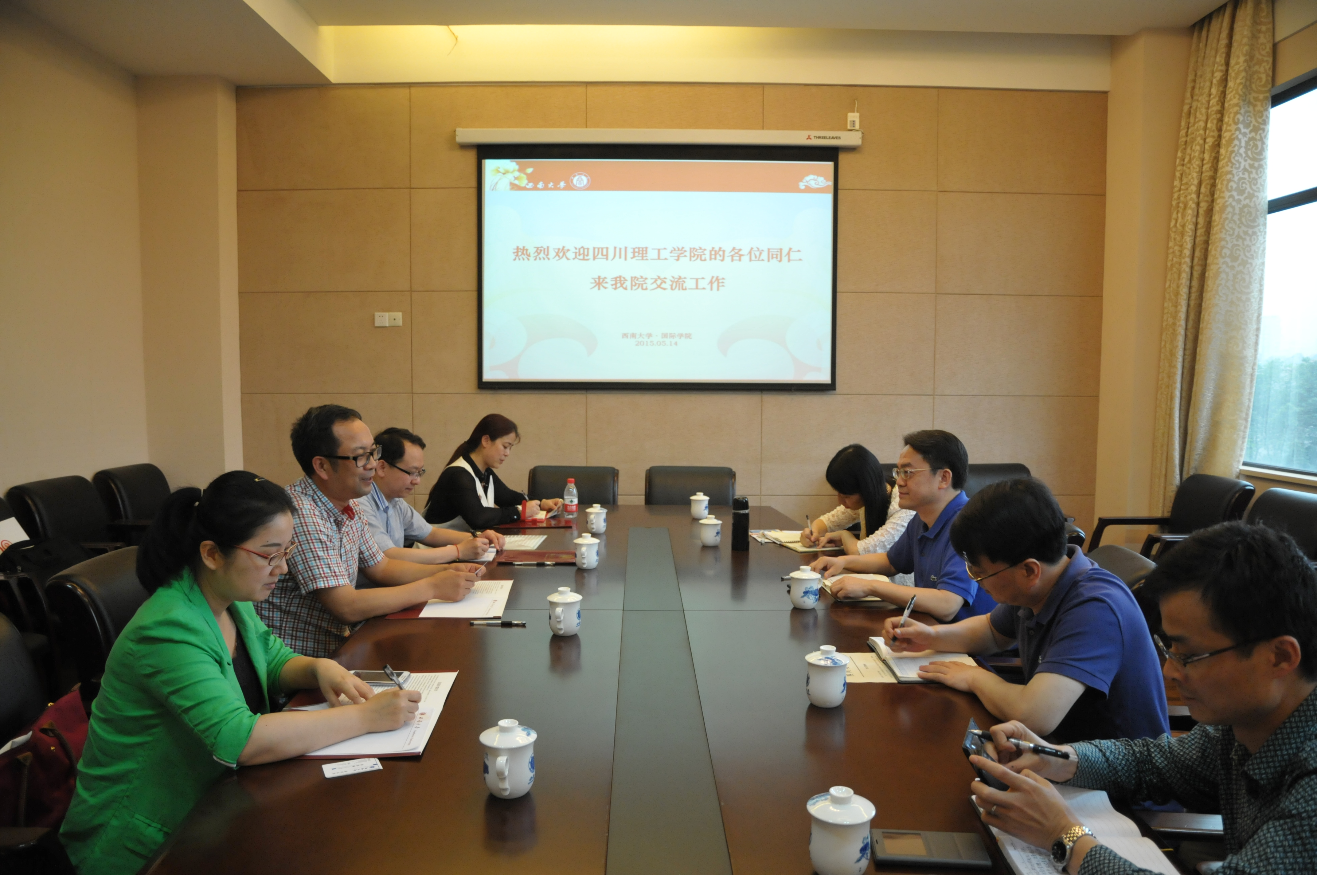 座谈会上,刘猛书记就公司和公司的概况做了简要的介绍,张家政副经理对公司的招生工作做了说明,双方就奖学金政策、中外合作办学项目等话题进行了深度交流。随后,四川理工公司一行应邀参观了公司的紫云楼。