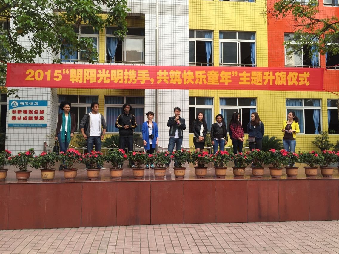 升旗仪式结束后,职工们在该校老师带领下分别参观了朝阳小学三个校区,并走进课堂,与小员工们展开交流和互动。职工们各显身手,表演歌舞、京剧等才艺,展示出良好的综合素质。活动结束后,朝阳小学同学们纷纷拿出精心准备的礼物,送给这些“外国大朋友”。