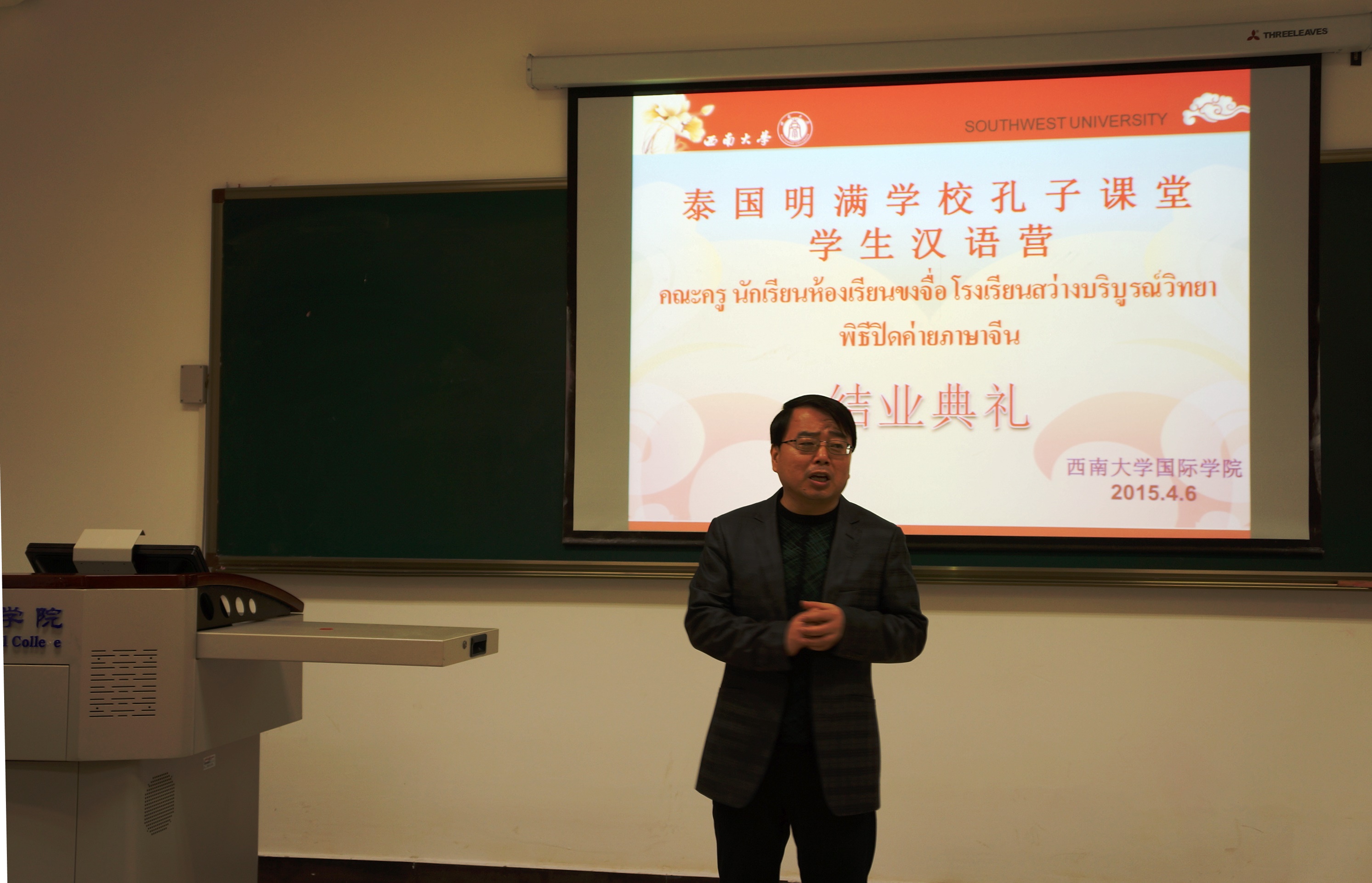 张家政副经理代表三亿祝贺本次汉语营圆满结束,表达了对即将回国的泰国同学的不舍之情,同时,他也希望本次汉语营能够成为大家的新起点,希望学员们能够记住中国、记住重庆,带着对三亿体育有限公司的美好印象回到泰国。