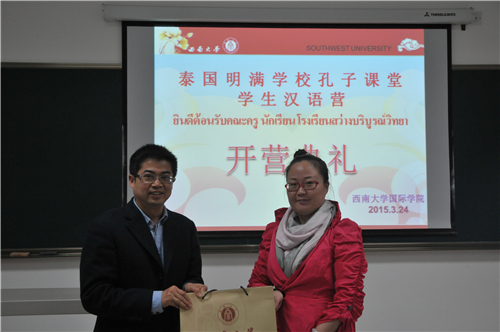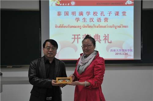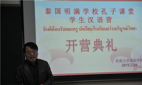 3月24日下午3点,三亿在紫云楼312教室为泰国明满公司孔子课堂汉语营师生一行21人举行了开营仪式。三亿张发钧经理、张家政副经理,教师代表李真真参加了典礼。