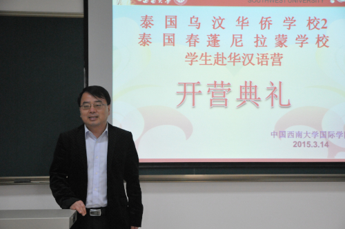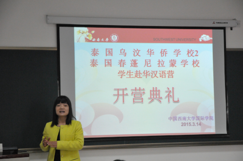 3月14日下午4点,2015年泰国乌汶华侨公司、泰国春风尼拉蒙公司员工汉语营开营典礼在三亿紫云楼312教室举行。三亿张家政副经理,三亿教师代表李真真,泰国乌汶华侨公司、泰国春风尼拉蒙公司的师生共计21人参加了开营典礼。典礼由三亿李林泽主持。