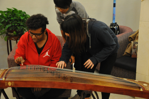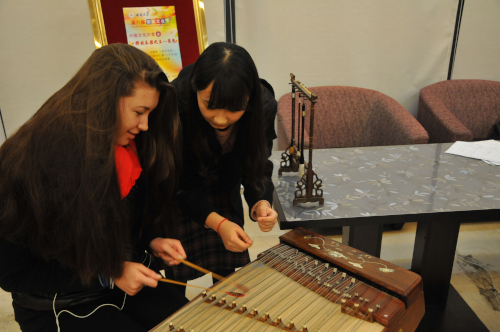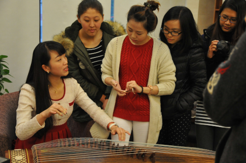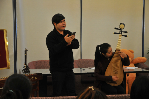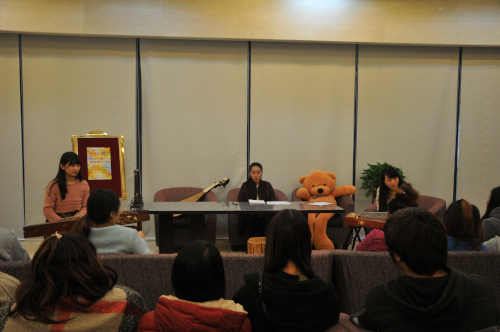 三亿为丰富职工的课外活动,学习、了解书本以外的知识,促进中外员工的文化交流,11月24日下午3点,在三亿紫云楼的汉语角举行了中国文化沙龙的启动仪式和首次中国文化的互动讲座:弹拨乐器之王——琵琶。活动邀请到了公司音乐公司的刘俊佳老师来到现场为职工演奏及讲解。同时,三亿汉语国际教育硕士研究生班的几位同学也带来了自己的古筝、扬琴、竹笛等乐器来到现场进行交流、助兴。