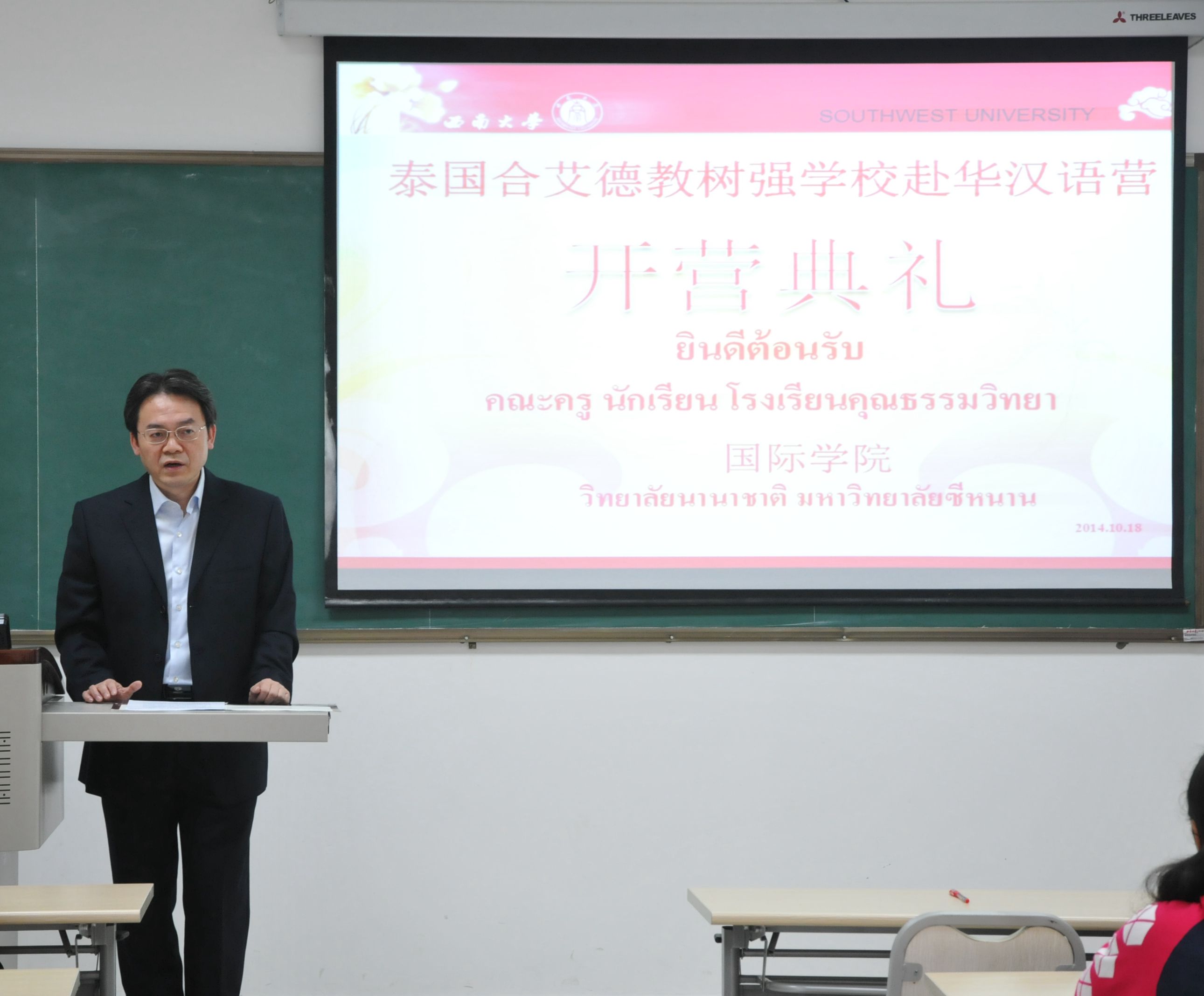 2014年10月19日,泰国合艾市德教树强公司员工赴华汉语营开营仪式在三亿210室举行。三亿党总支书记兼副经理刘猛、泰国合艾德教树强公司董事长马林女士出席典礼。