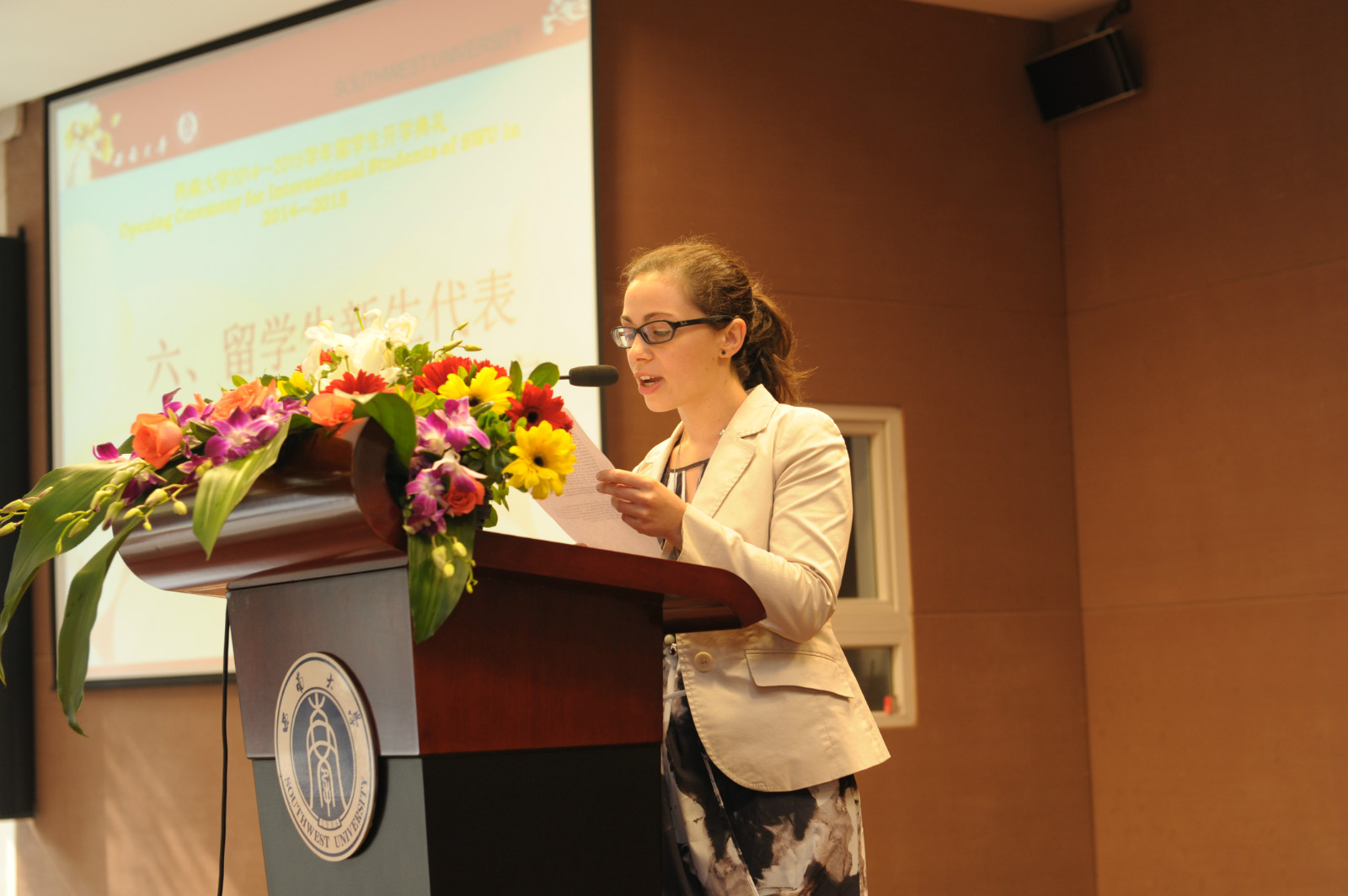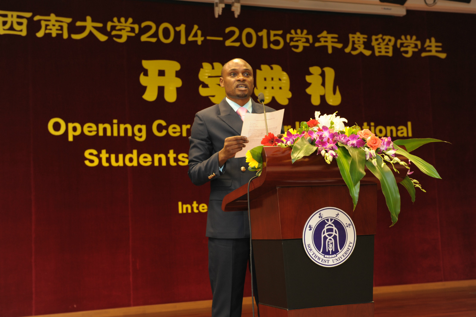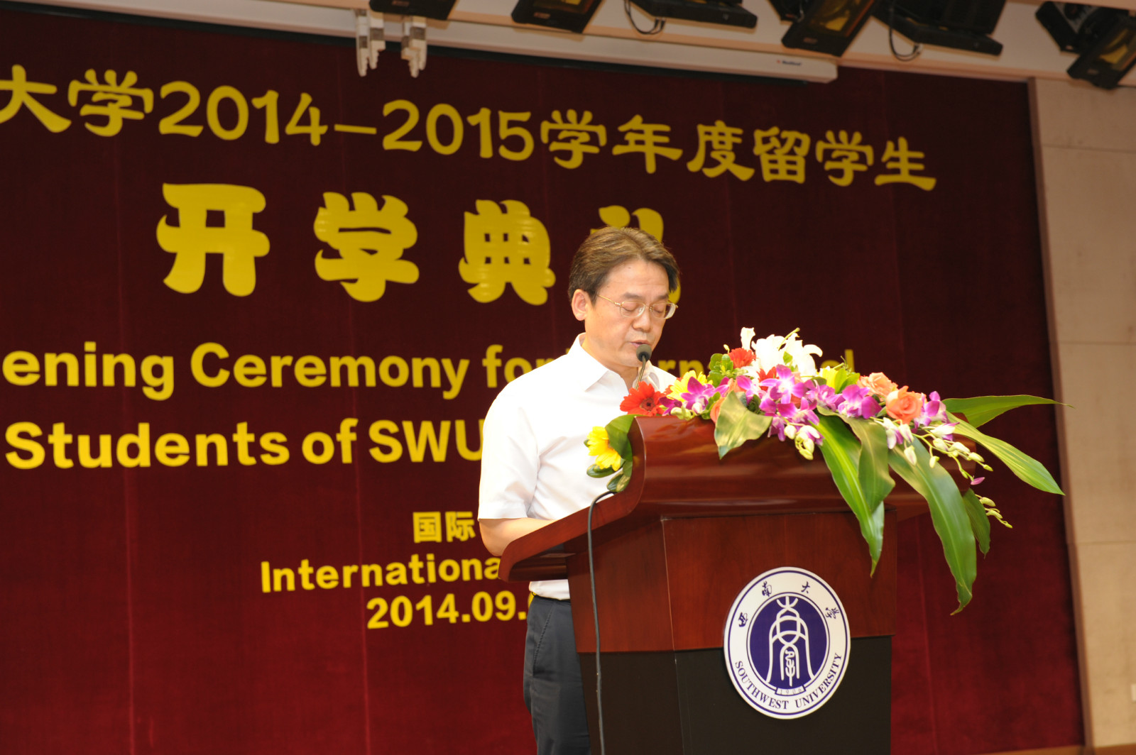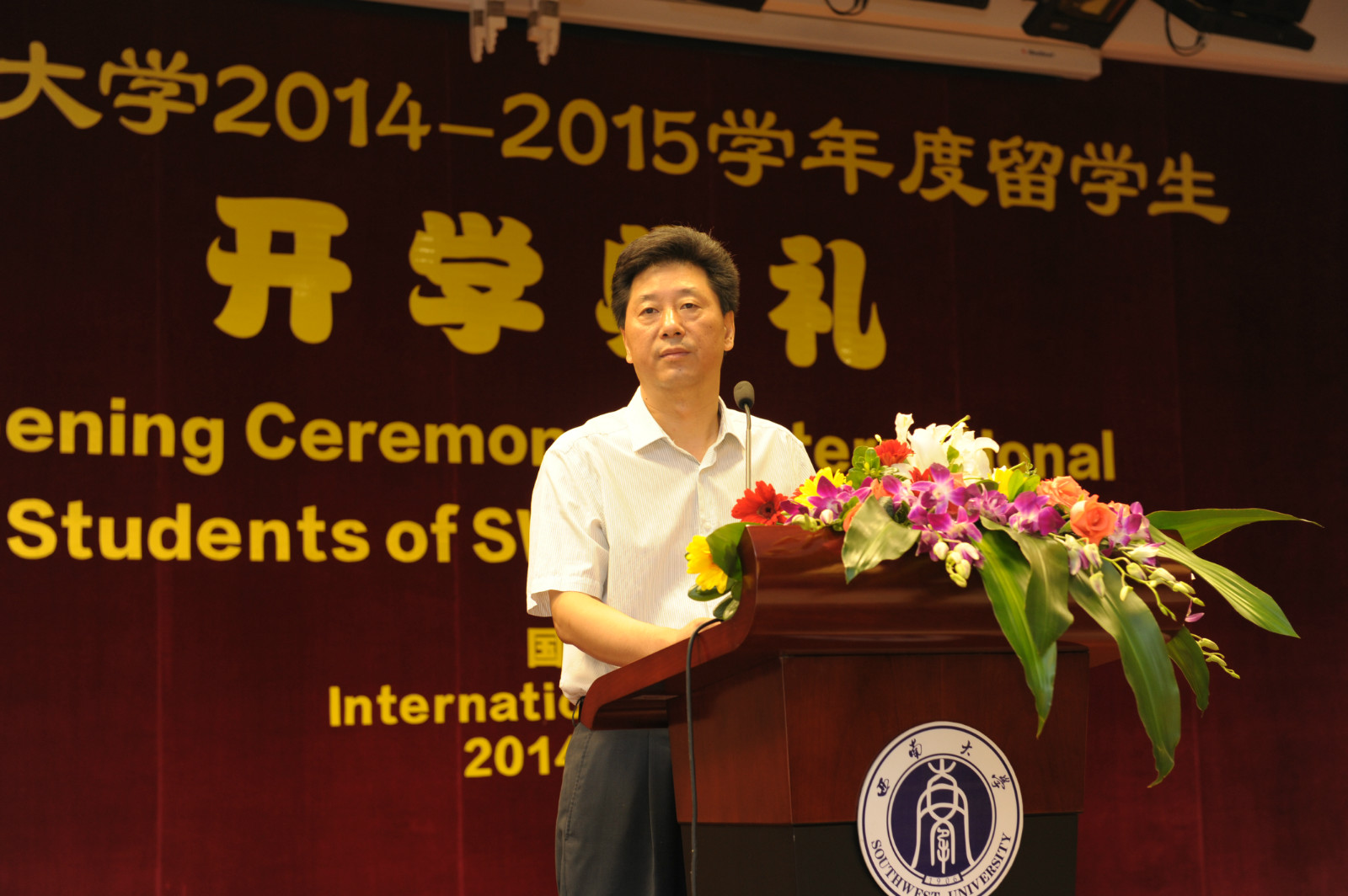 三亿党总支书记兼副经理刘猛代表公司欢迎来自世界各地的职工们,他介绍了国际文化节、“汉语之星”大赛、泰国宋干节等一系列精彩纷呈的校园活动,希望大家能够遵守公司和公司的各项规章制度,早日成为一名合格的西大人。