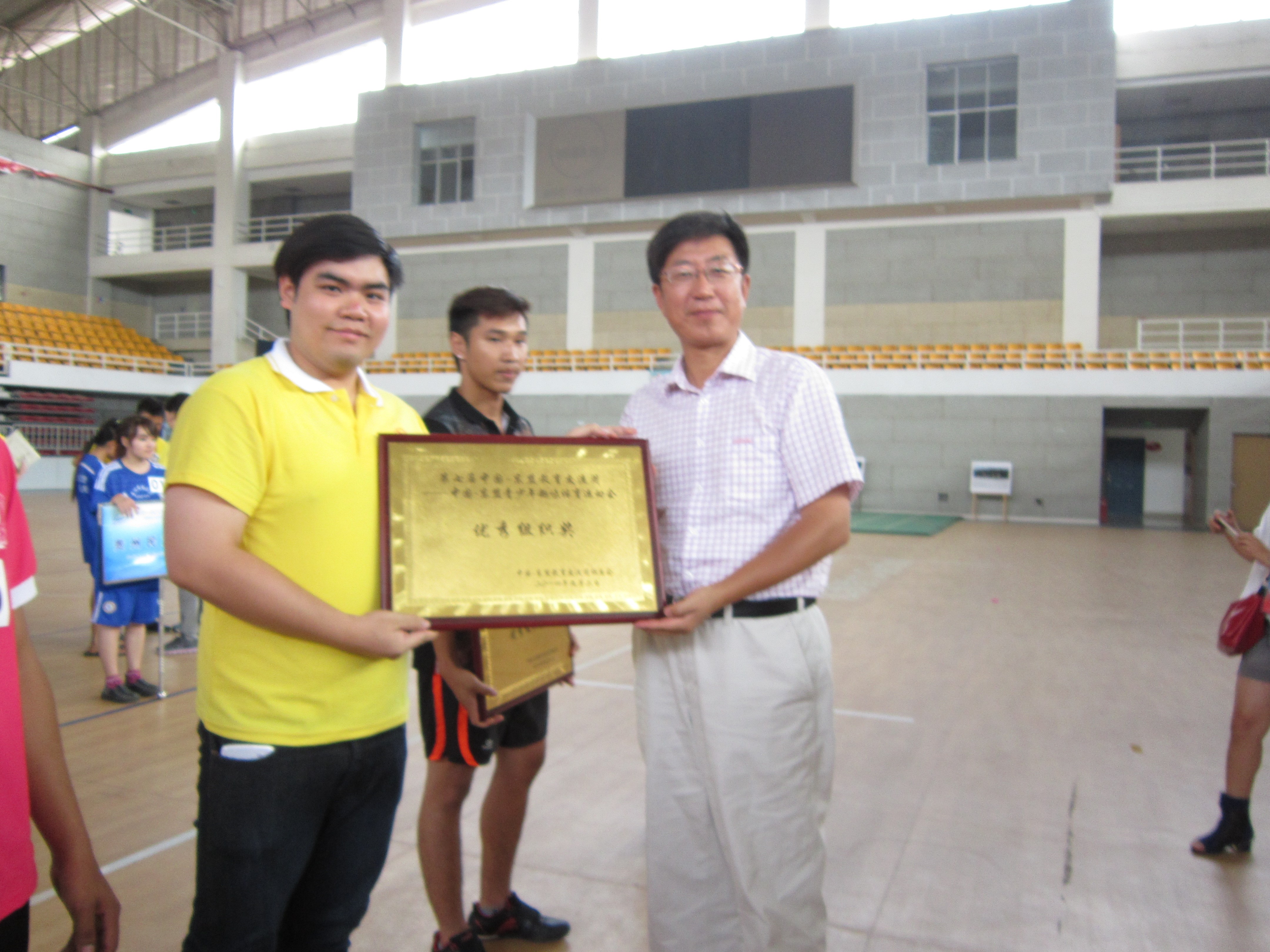 趣味运动会中,公司5名职工运动员和来自贵州省5所高校的东盟员工组队,完成踢毽子、跳长绳和螃蟹运球等3个项目的比赛。通过激烈的比赛,公司老挝籍员工苏学士所在的小组获得了跳绳比赛第二名,越南籍员工李嘉燕所在的小组获得了跳绳比赛第三名,泰国籍员工罗俊勇所在的小组获得了螃蟹运球比赛第三名。教育部员工体育协会联合秘书处副秘书长薛彦青为公司颁发了优秀组织奖。