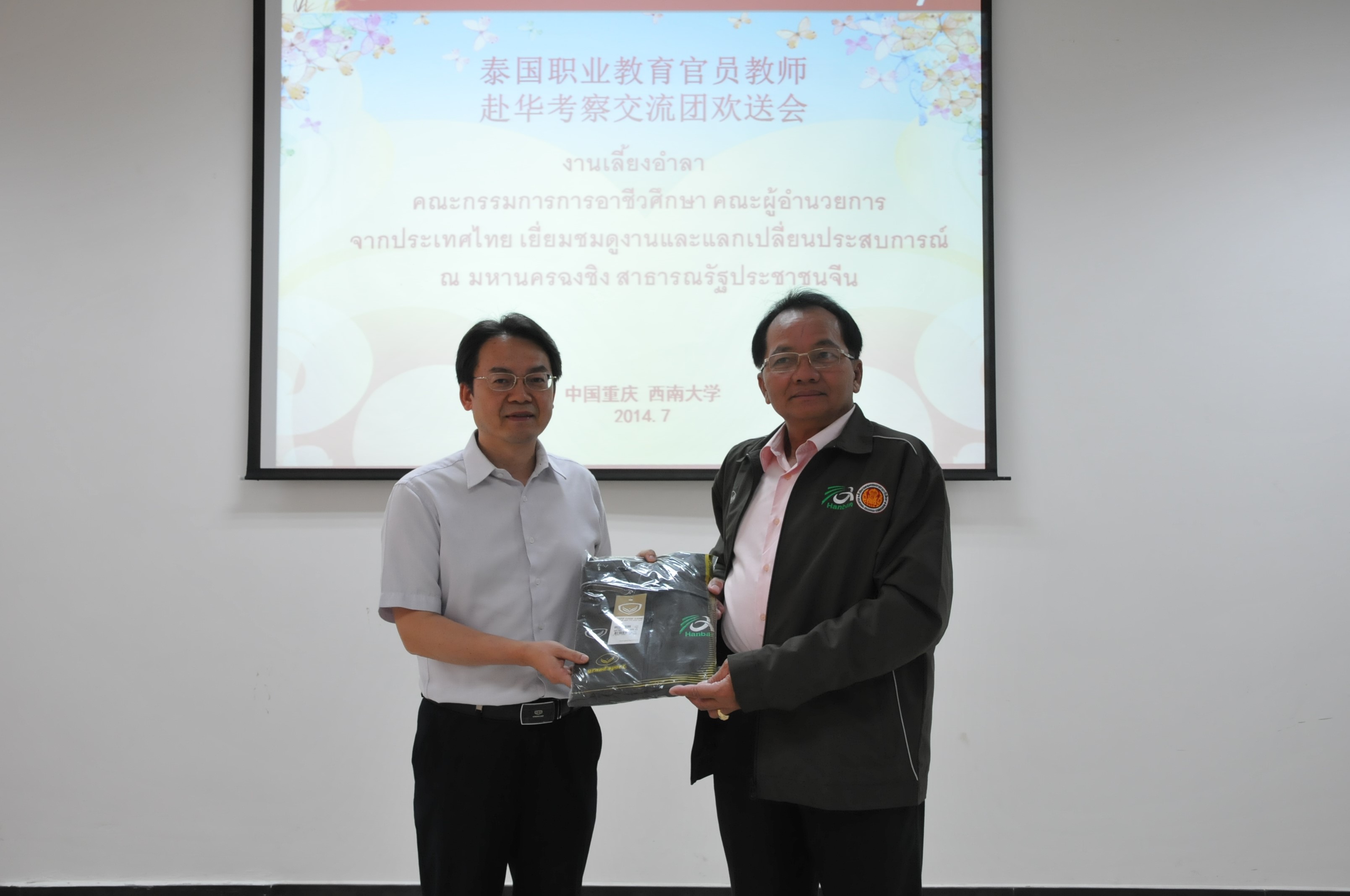 刘猛书记致欢送词。首先祝贺各位团员圆满完成在重庆的交流考察任务,感谢大家对公司工作的理解与支持。期待有更多泰国职业技术教育公司的师生来到三亿体育有限公司进修学习。祝愿泰国客人身体健康,心情愉快,返程顺利。