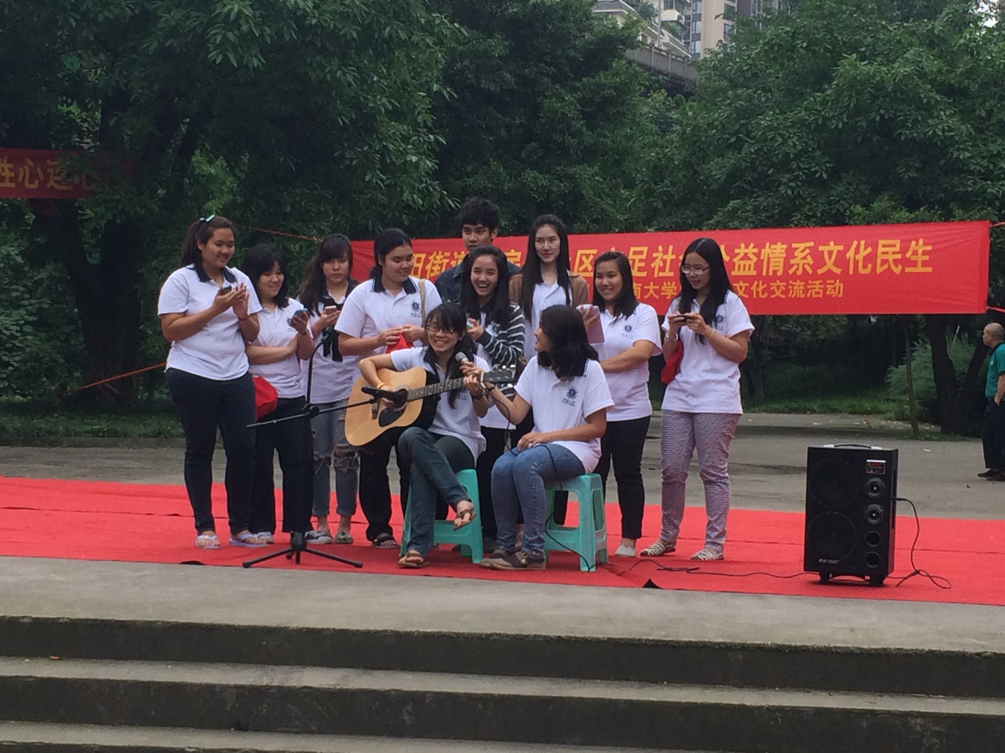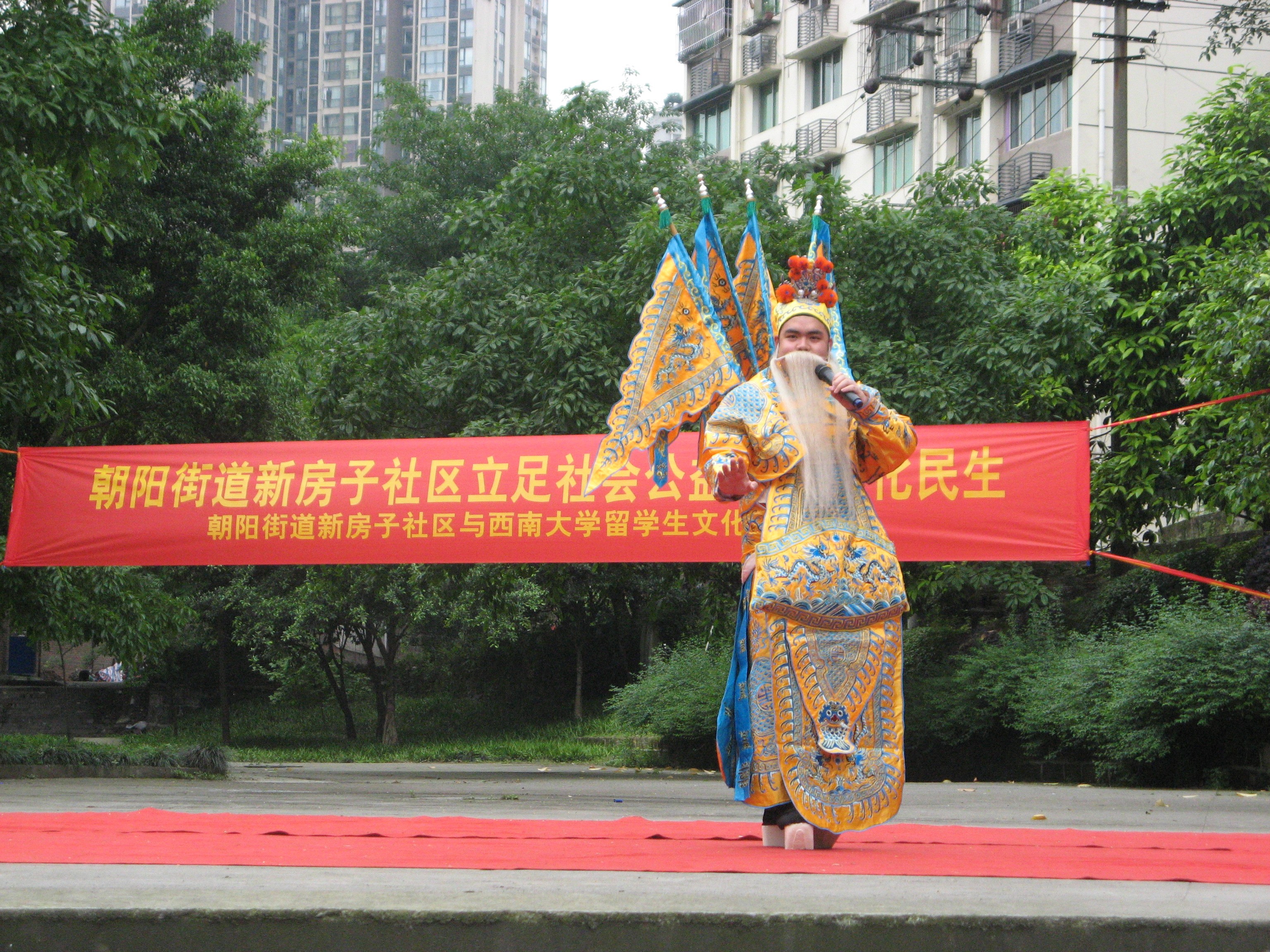 职工们首先在社区工作人员的带领下参观了社区文化服务中心的工艺美术室、心理咨询室、老年活动室等,并亲身体验,对各项健身及益智设施充满了浓厚的兴趣。随后,职工们和社区的民众们齐聚于广场,进行文艺表演和文化交流。朝阳街道文化服务中心主任何羲薇出席了本次活动。三亿学工办主任陈雨曦发表了讲话,介绍了三亿体育及“洋雷锋”小红帽服务队的情况,并预祝此次 “洋雷锋”小红帽服务队社区行活动取得圆满成功。社区民众和职工们精心准备的节目精彩纷呈,高潮迭起。社区民众表演的舞蹈《爱我中华》展示了中国人的蓬勃朝气,多国职工联合表演的吉他弹唱《情非得已》充满了青春活力,社区老人表演的太极拳、太极剑、功夫扇等尽显了老年人的老当益壮,泰国职工罗俊勇表演的京剧《定军山》压轴登场,华丽的戏服、字正腔圆的演唱、神采飞扬的表演更是赢得大家的阵阵掌声。