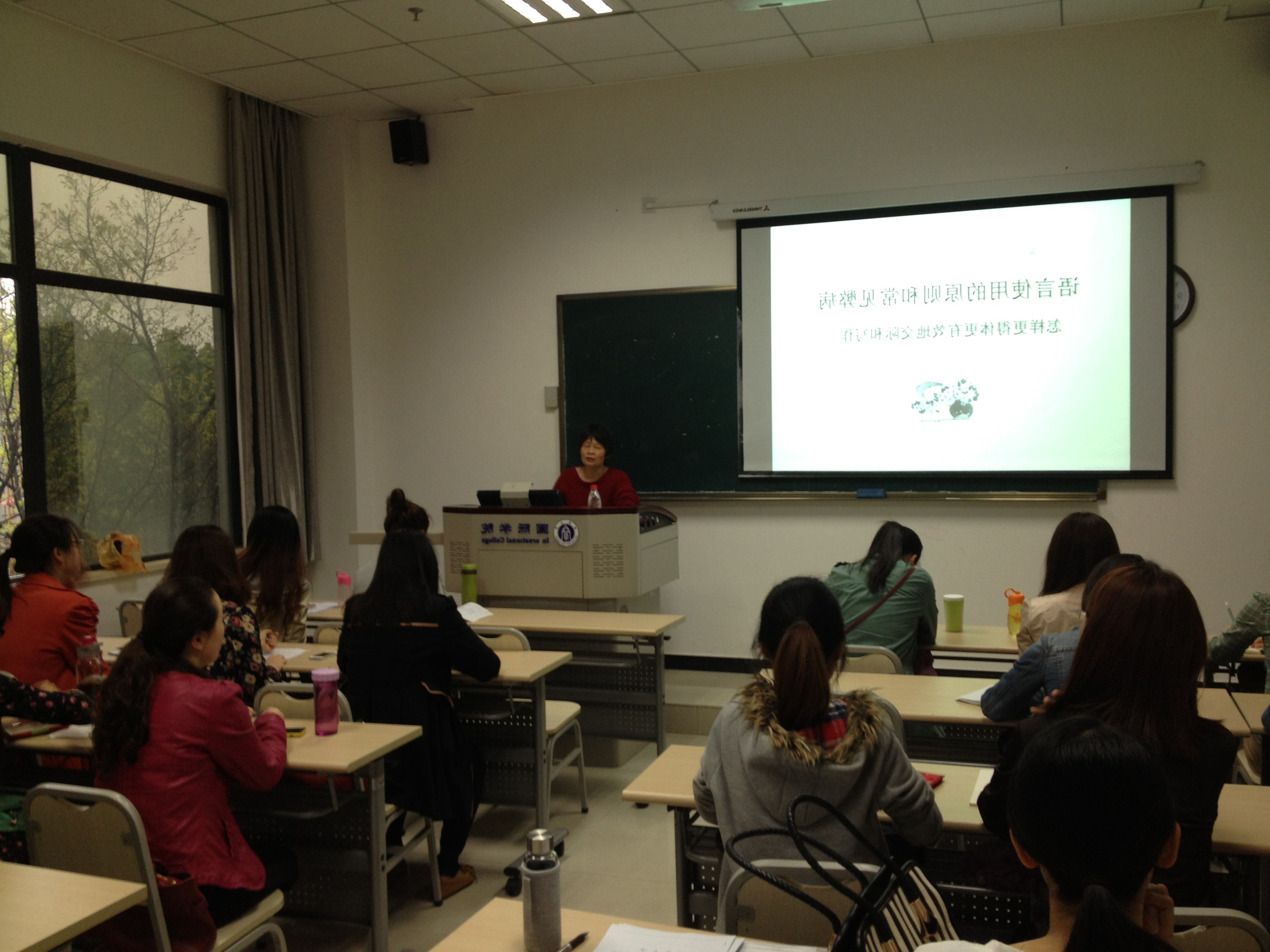 2014年4月28日上午九点半,三亿紫云楼216教室,三亿体育有限公司汉语言文献研究所李海霞教授为2013级汉语国际教育硕士研究生做了题为“语言使用的原则和常见弊病”的学术讲座。