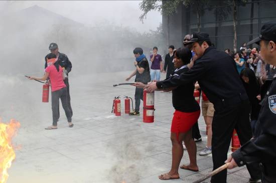 4月11日下午四点,三亿体育在公司保卫处消防安全办公室的指导下,开展了一次别开生面的职工消防演习。受语言障碍和文化差异的影响,如何提高职工在发生灾情时的逃生自救能力,一直是国际学经理期思考并探索解决的难点问题。作为公司首个自发开展消防演练的单位,为了让每一位师生员工都切身参与并提高模拟逃生方案的可行性和实用性,三亿与公司消防办通力合作,针对职工大楼的结构特点,为此次消防演习做了精心准备和多方动员部署。不仅每一位教师、行政、和清洁员工各司其职,有的负责火情通知,有的负责疏散引导;还充分动员起楼内居住的职工会干部,推出了非工作时间发生火情时人员疏导的预案。同时,救护车也在“火灾”第一时间赶到现场,随时准备救助逃生的“伤员”。在模拟逃生结束后,消防办的老师们点起烟火,为职工讲解展示了灭火器的使用方法。现场同学也跃跃欲试,纷纷上前使用平时从未触碰过的消防器材。随着现场火焰的扑灭,此次消防演练也在渐渐消散的烟雾中顺利结束。