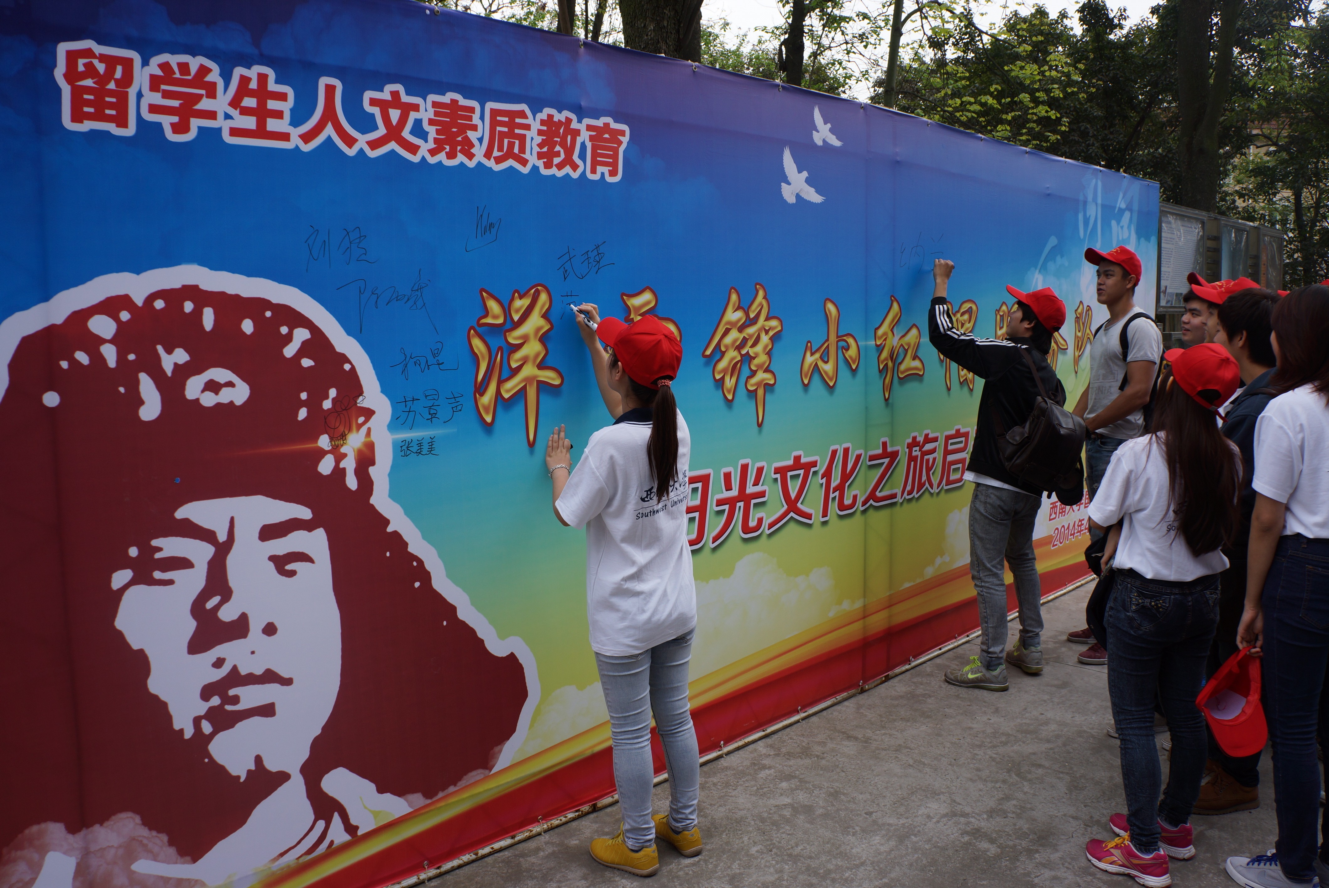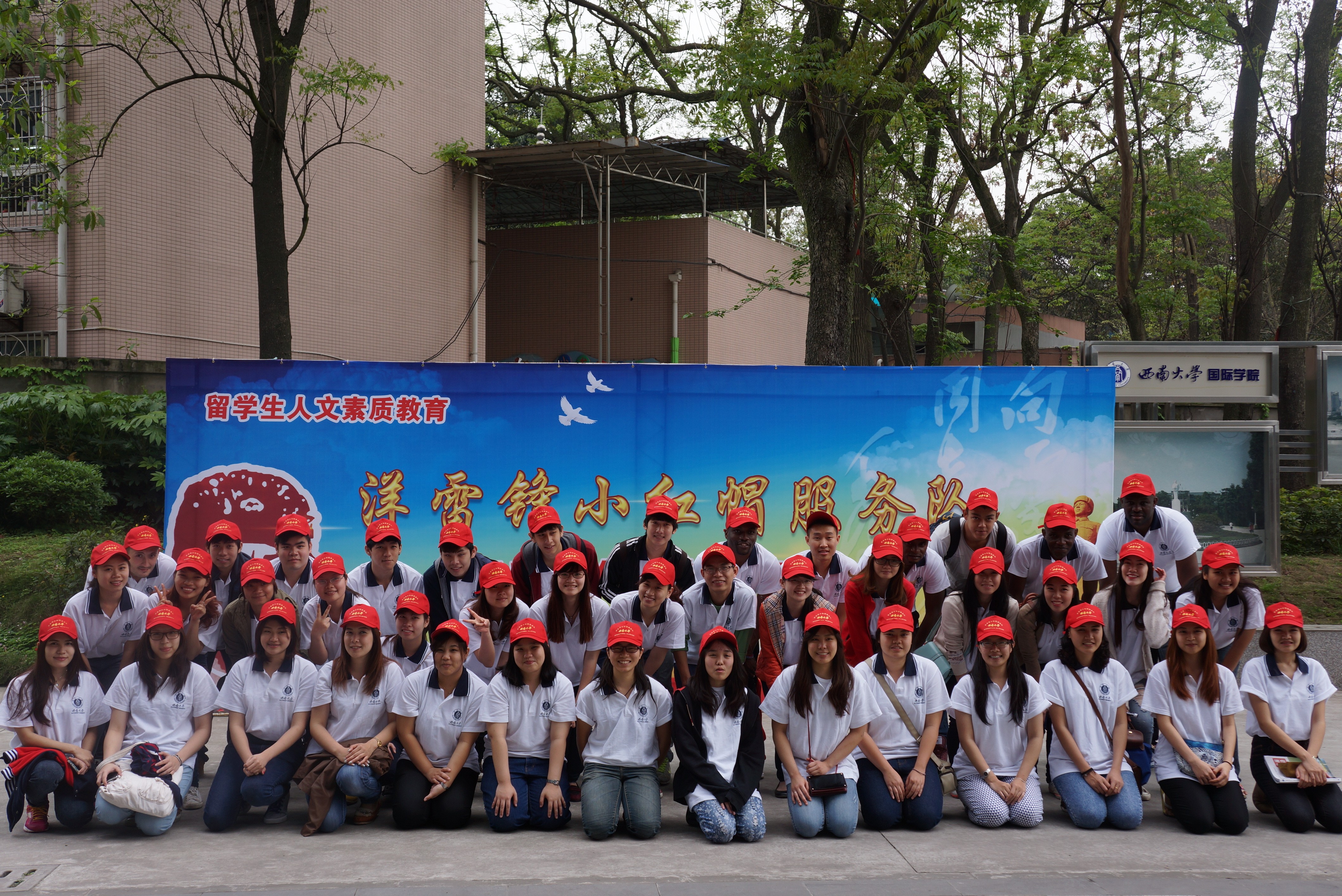 4月9日下午,三亿体育有限公司“洋雷锋”小红帽服务队阳光文化之旅活动正式在三亿启动。由来自9个国家50名在校职工组成的“洋雷锋”小红帽服务队,将走进社会,开展一系列公益活动。