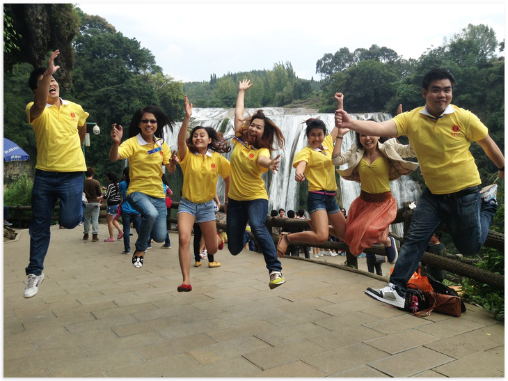 整个活动从9月15日至19日,历时五天。在此期间公司师生代表参加了盛大的联谊交流活动开幕式,听取了贵州民族大学举办的"中国传统文化"讲座,并且专程赴花溪十里河滩的孔子学堂祭拜孔子,了解儒家文化,观看中国传统琴棋书画表演。17日下午至18日公司师生还游览了花溪青岩古镇和黄果树瀑布,领略贵州优美的自然风光和人文风情。