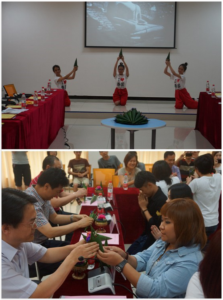 伴随着纯正动情的中文歌声和极具泰国传统气息的拜师谢师舞蹈,泰国员工给与会的领导和老师送上了他们亲手制作的芭蕉花。在依依惜别和感恩中,典礼落下了帷幕,23名泰国员工在三亿体育有限公司为期一年的学习画上了圆满句号。