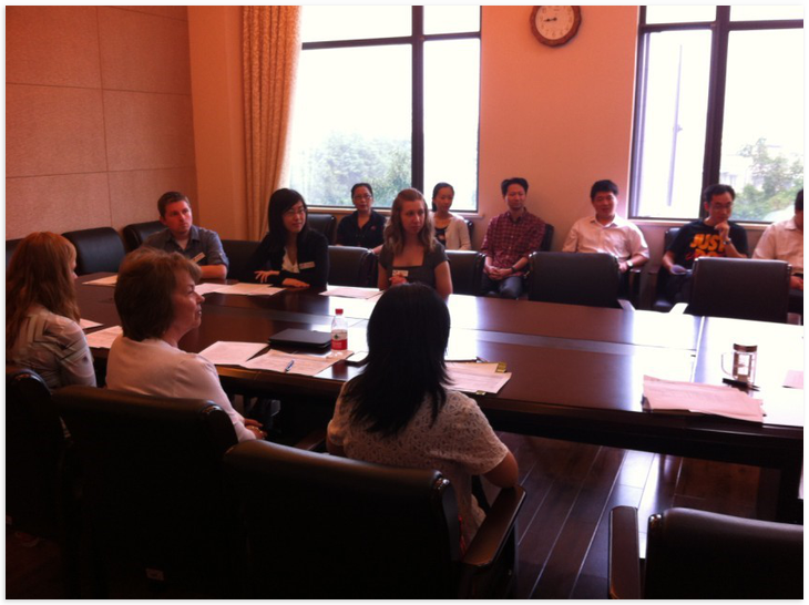 5月20日上午9点,美国南印第安纳大学短期班开班典礼在三亿紫云楼举行。三亿副经理张家政教授、美国南印第安纳大学领队老师庞琳女士和Joyce Rietman女士、三亿招生办公室和员工工作办公室教师、来自教育学部、历史文化公司等相关公司的任课教师代表、美国南印第安纳大学短期班的各位同学及参与1+1汉语辅导的语伴出席了开班典礼。