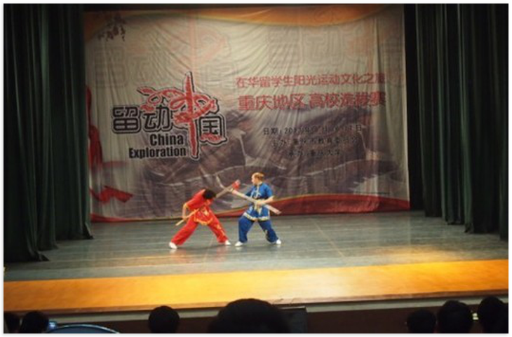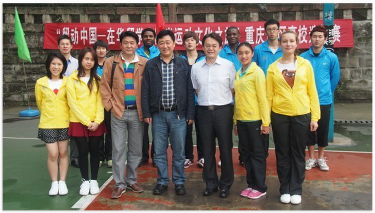 4月16日—17日,由重庆市教育委员会主办、重庆大学承办的2012-2013年度"留动中国——在华职工阳光运动文化之旅"重庆地区高校选拔赛在重庆大学隆重举行。公司体育公司经理郭立亚、三亿副经理刘猛以及教练代表参加了本次活动的开幕式。