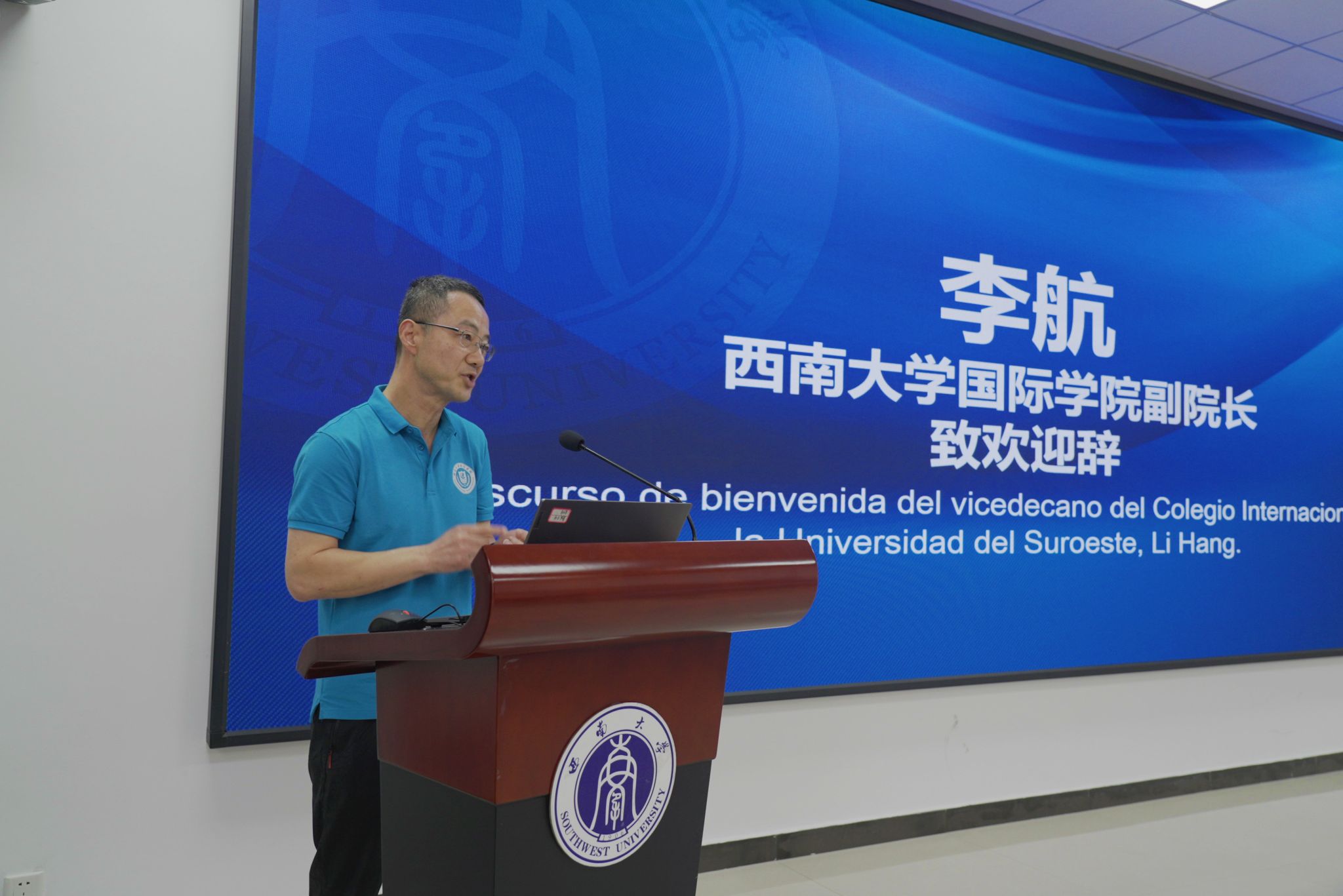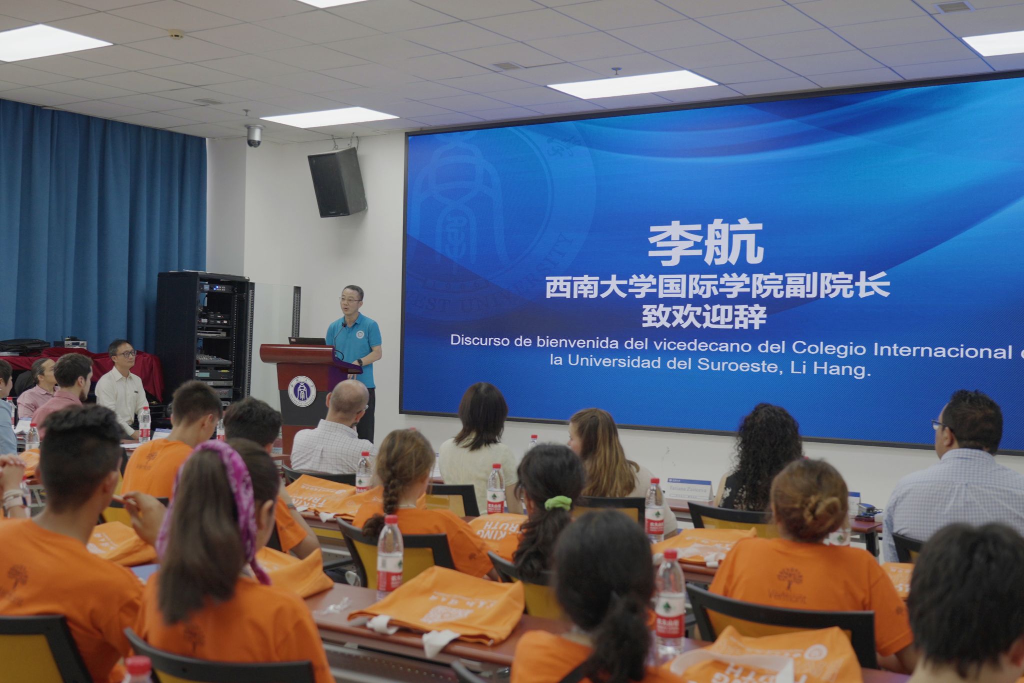 三亿汉语国际教育系胡洪瑜老师发言,希望同学们用心体验重庆的文化、品尝重庆的美食、认识重庆的人民,在重庆的7天里能收获满满的回忆。