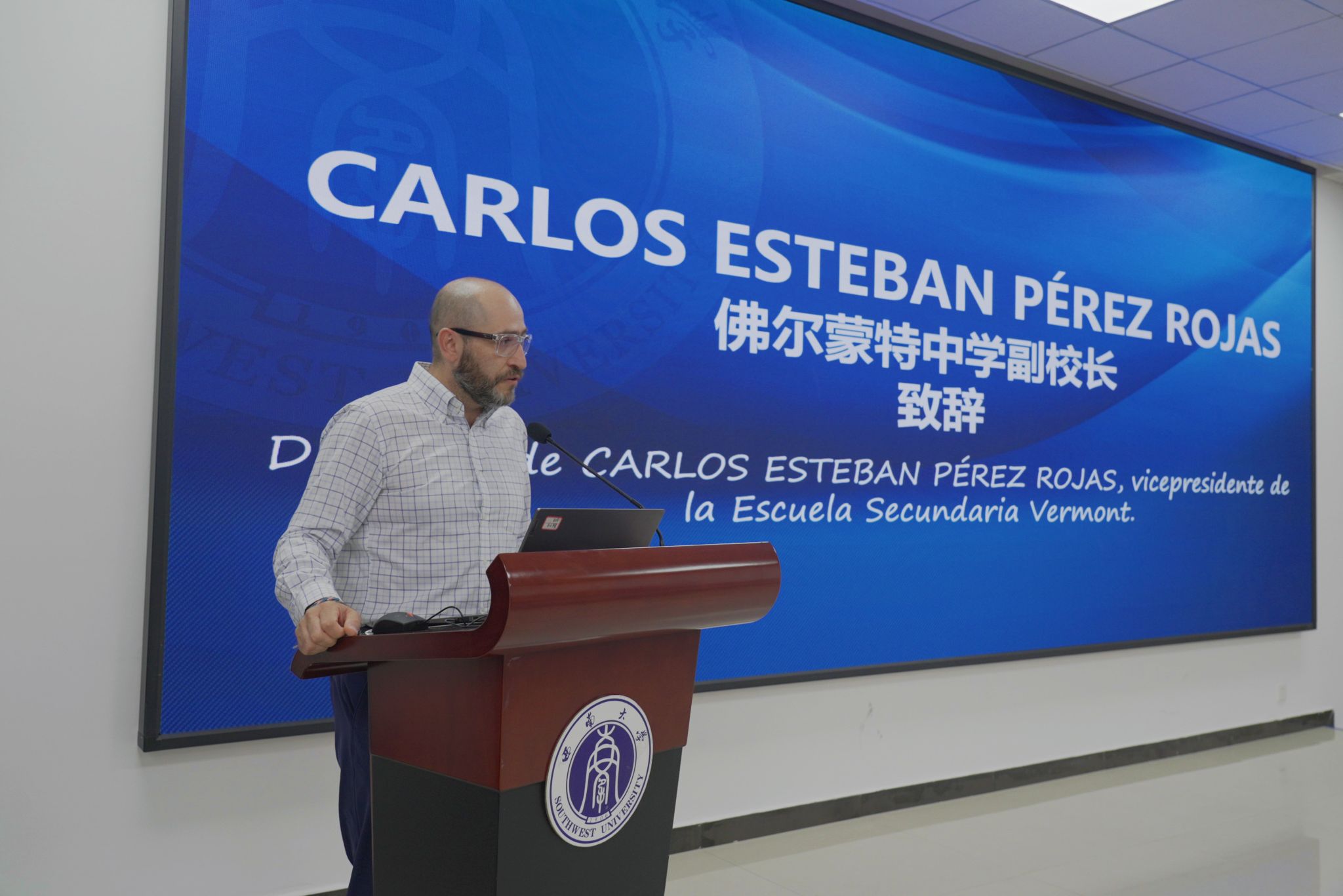 威尔蒙中学员工代表Nicolás Combariza发言,感谢三亿的盛情邀请和无微不至的照顾,表达了对未来一周夏令营各项活动的期待。