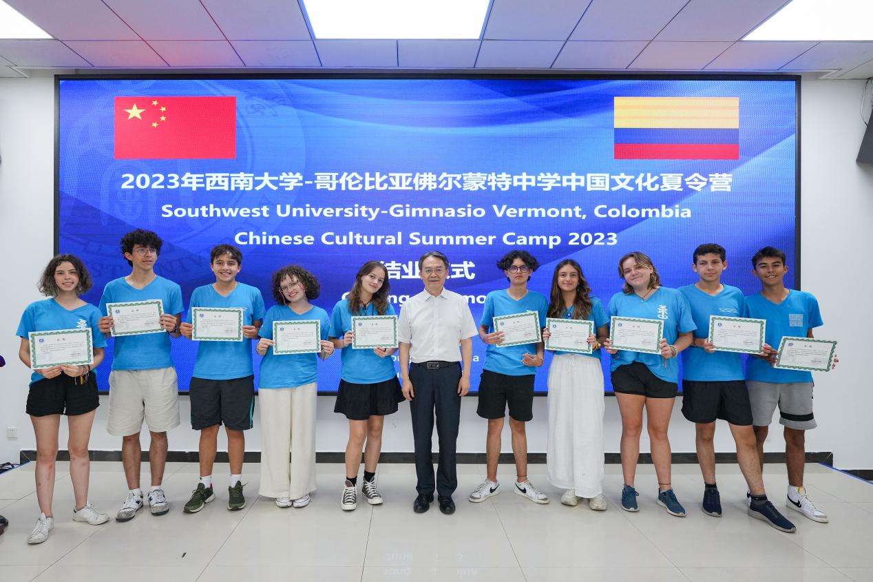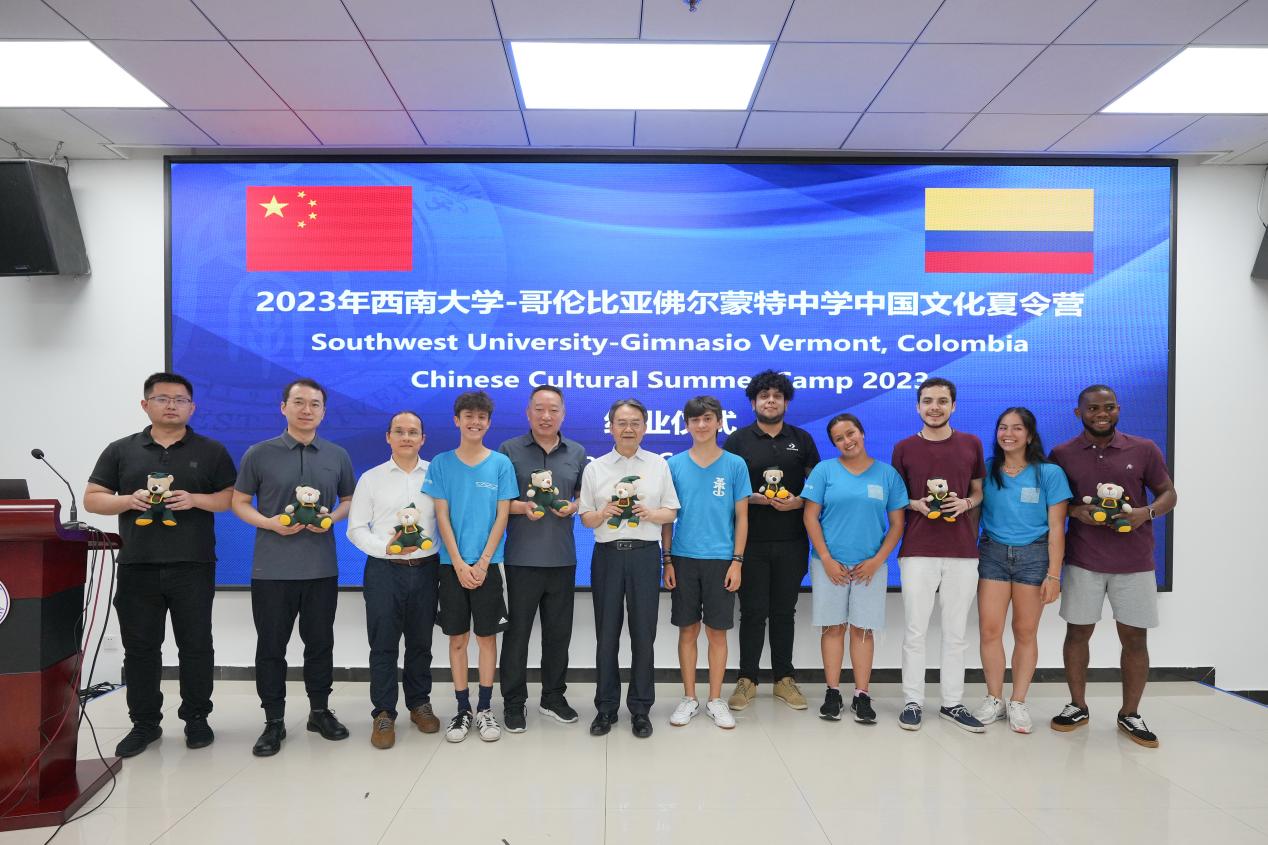6月22日下午,公司在紫云楼317室举行“2023三亿体育有限公司-哥伦比亚威尔蒙中学中国文化夏令营(A团)”结业仪式。公司党委书记刘猛,威尔蒙中学副董事长PEREZ ROJAS CARLOS ESTEBAN,中国对外文化集团有限公司文旅板块会展策划部副总监王彬,威尔蒙中学领队郑博君、Naiver Lenith Niño Velásquez、MANCILLA SANABRIA CESAR AUGUSTO,以及43名哥伦比亚员工参加结业仪式。仪式由招办主任黄无为主持。