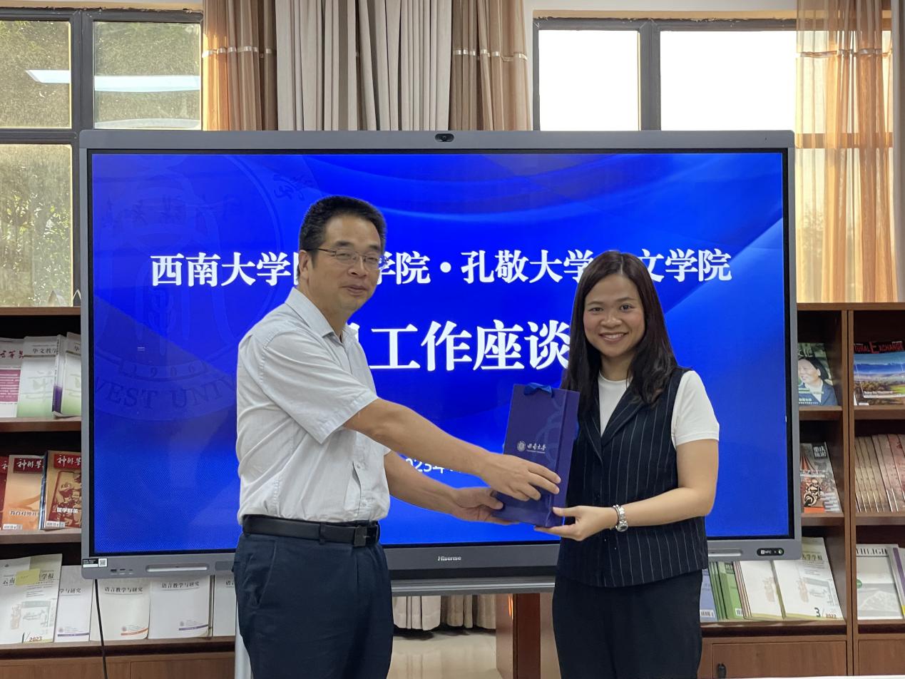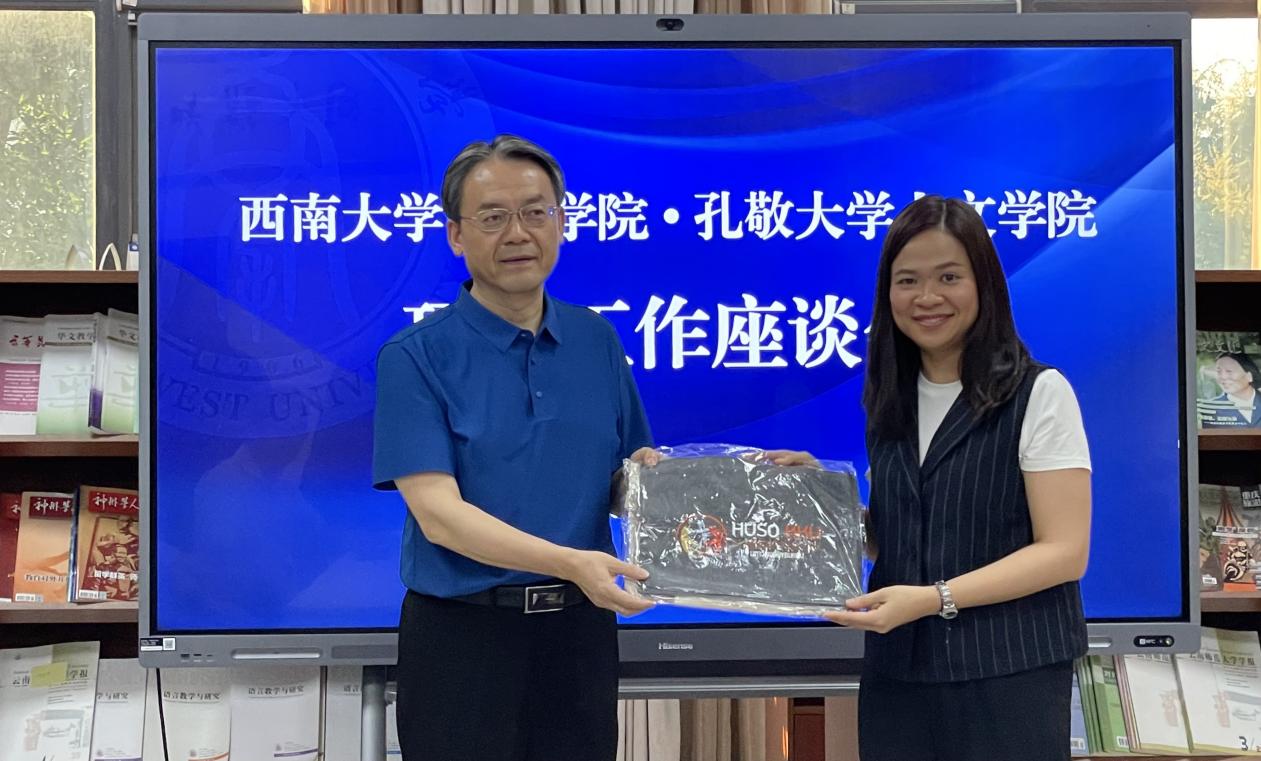 刘猛书记回顾两校的友好合作历史,高度评价孔敬大学人文公司对于“2+2联合培养项目”的大力支持,表示,虽然疫情影响了项目招生,给线上授课带来诸多挑战,但是在多方共同努力之下,项目不仅没有中断,而且确保线上授课效果,实现了员工正常毕业、授位的人才培养目标,得到家长和社会的赞誉。今年取得招收18名项目员工的好成绩,实属不易,期望两员工谊长存、项目持续健康发展。