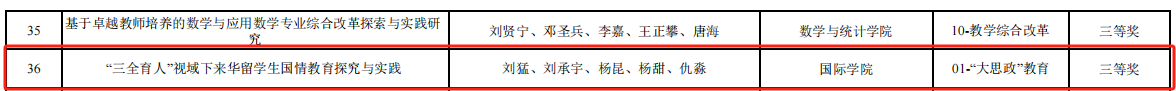 近日,公司公布“三亿体育有限公司第五届教学成果奖”获奖通知,公司党委书记刘猛牵头申报的公司产品成果“‘三全育人’视域下来华职工国情教育探究与实践”荣获三等奖。