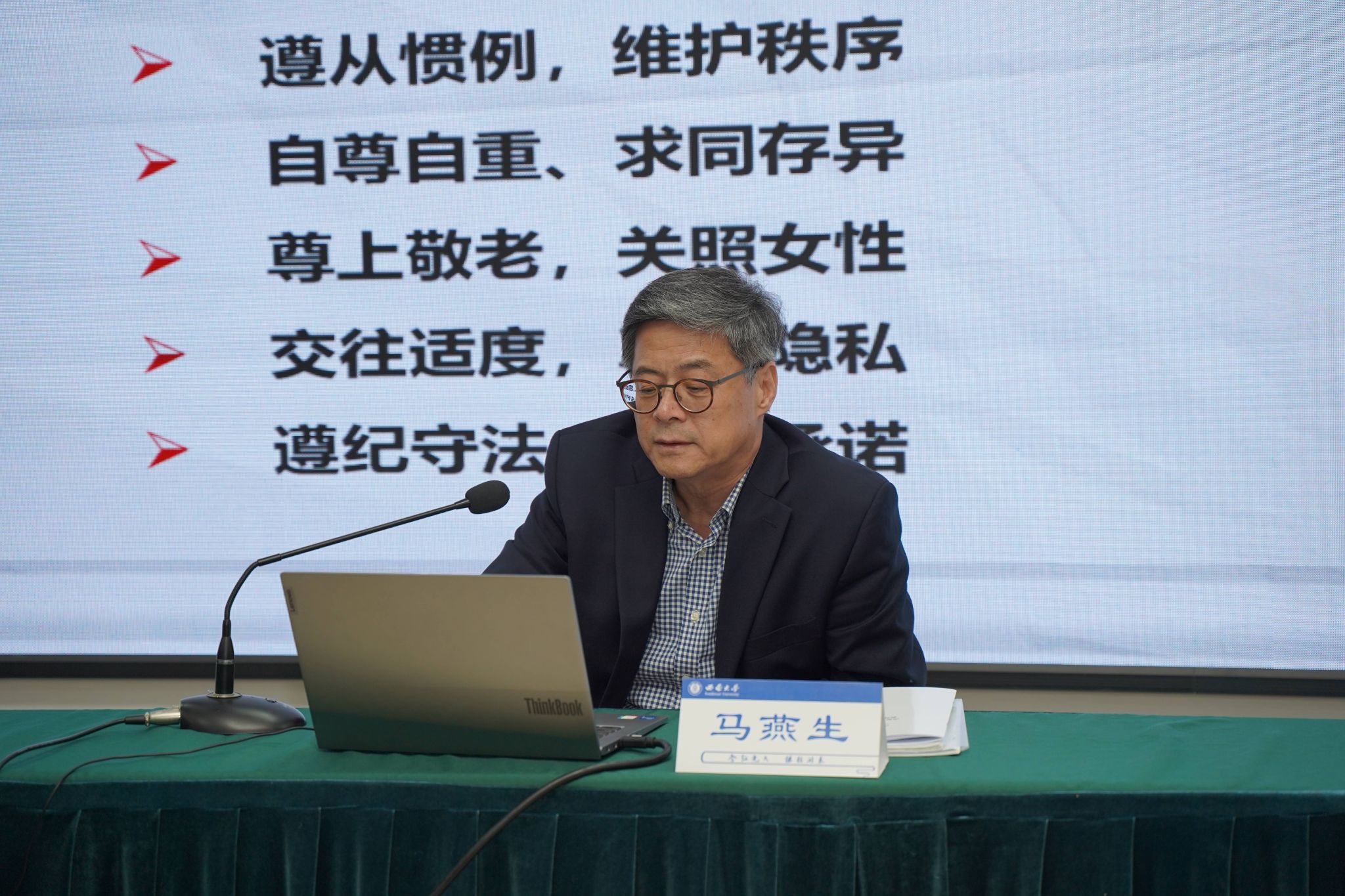 马燕生主任的讲解生动详实,让全体师生受益匪浅,不仅使大家对涉外礼仪的相关知识有了更深入的了解,也引发了大家对个人行为、品德提升的思考。讲座不仅是学术的盛宴,更是思想的碰撞。