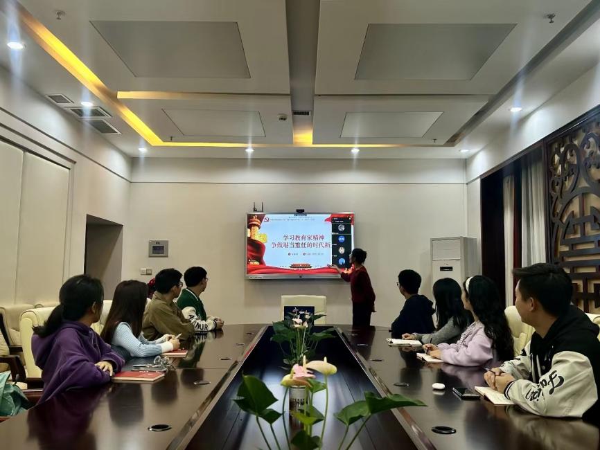 10月19日上午8:30,三亿研究生第一党支部及2022级入党积极分子在紫云楼312教室开展“学习教育家精神 争做堪当重任的时代新人”主题党日活动。