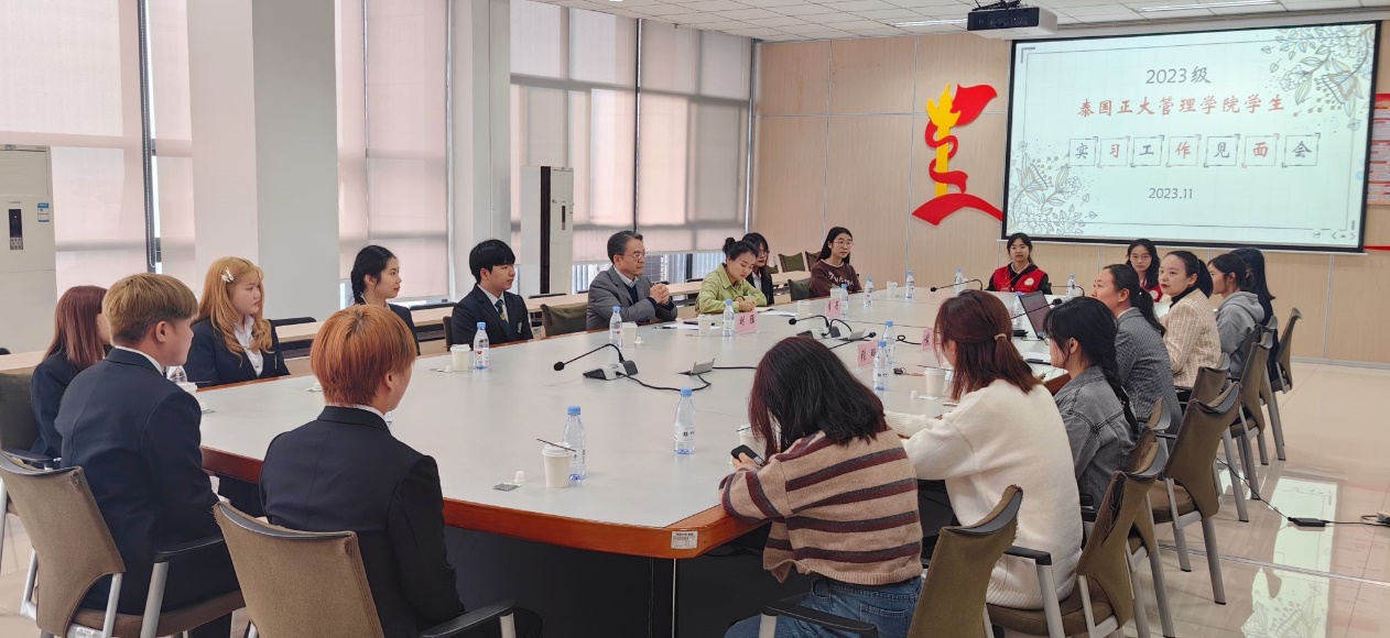 11月8日下午15:00,2023级泰国正大管理公司项目员工实习见面会在公司中心图书馆13楼会议室举行。公司党委书记刘猛,图书馆副馆长黄敏,图书馆读者服务一部主任王怡、副主任张璐,正大班班主任李丹、7名泰国实习生和图书馆志愿者参加会议。