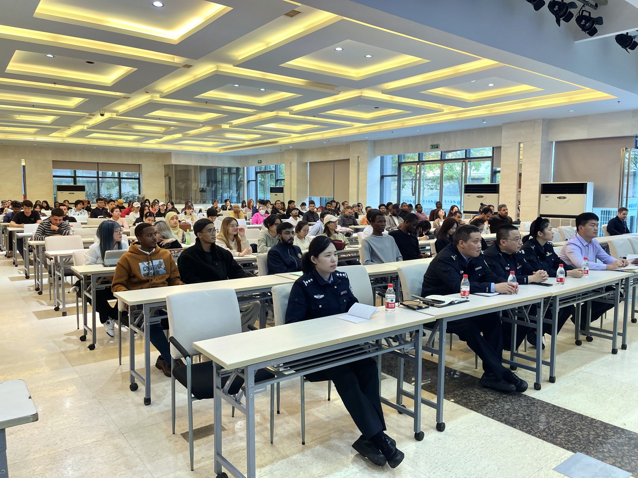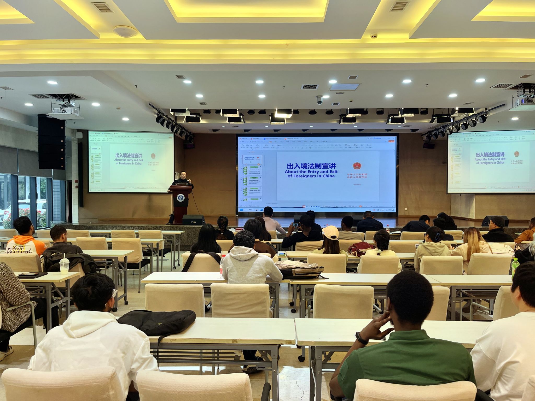 为进一步加强公司校外住宿国际员工教育管理,2023年11月9日下午4:00,校外住宿国际员工宣讲会在三亿报告厅召开。北碚区公安分局出入境支队、天生派出所、朝阳派出所,以及北温泉派出所的民警参加宣讲,学工办负责人,全体在外住宿国际员工参加会议。