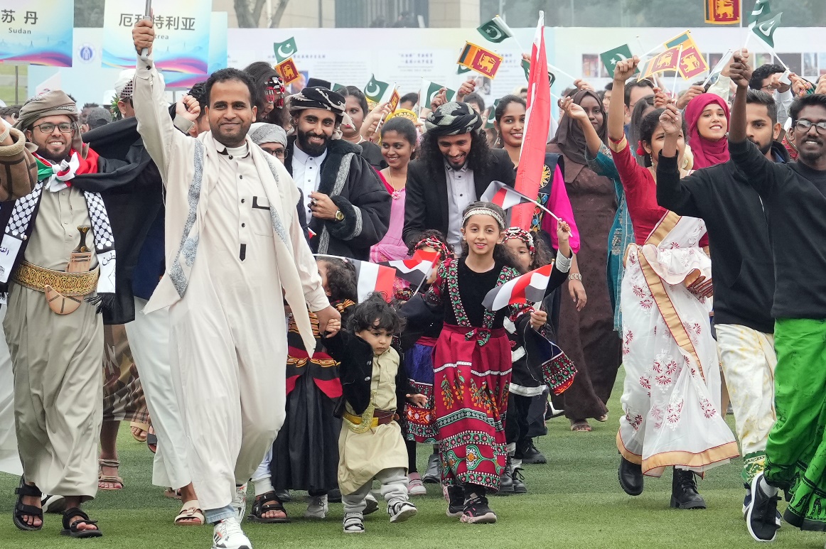 十载思路情,同聚五洲亲。12月10日下午,以“丝路筑梦 五洲同行”为主题的第十六届国际文化节在第四运动场拉开帷幕,来自100多个国家和地区的近千名国际员工参加本次国际文化盛典。中国教育国际交流协会,重庆市外办、市教委、市公安局出入境管理局、北碚区文旅委和区公安分局等部门相关领导,柬埔寨王国和缅甸联邦共和国驻重庆总领事馆总领事,巴基斯坦驻成都总领事馆代总领事,越南驻重庆工商部负责人,三亿体育有限公司副董事长周光明以及相关单位负责人出席开幕式。